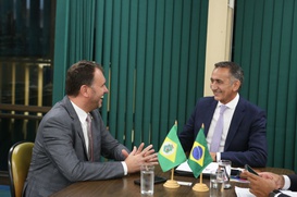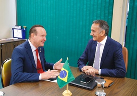 Outra agenda foi com o senador Efraim Filho (União/PB) e o prefeito da cidade de Santa Helena (CE), João Cléber. O gestor municipal apresentou ao ministro um projeto para integração das águas do Eixo Norte da transposição do Rio São Francisco, por meio do Ramal do Apodi, com a barragem pública no Sítio Cajueiro. “Esta é uma ação muito importante para que possamos desenvolver o povo da nossa terra, que precisa muito de água, pois água é vida, é sobrevivência, é desenvolvimento”, disse o prefeito.