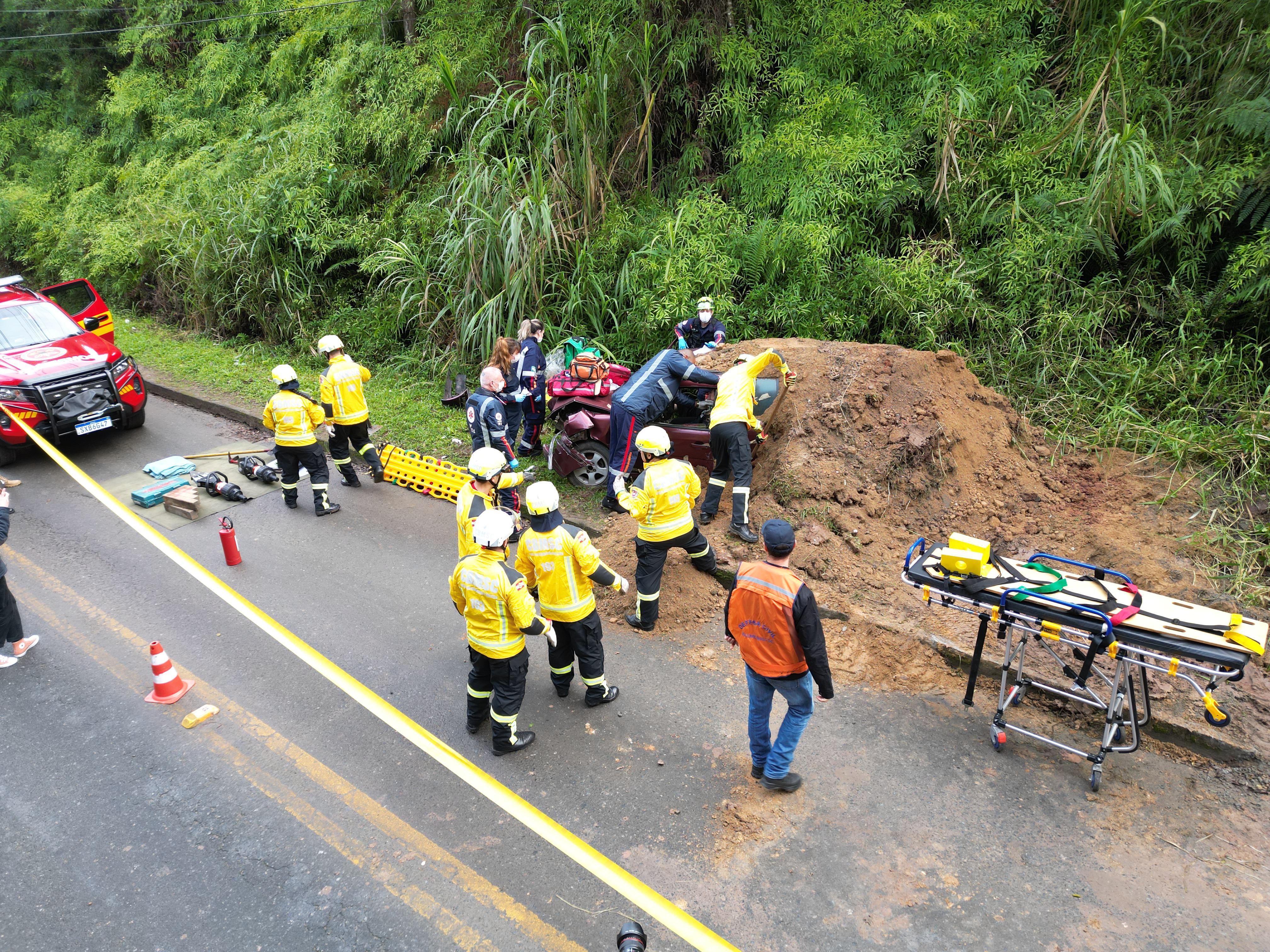 As ocorrências fictícias incluíram soterramento de veículos, vítimas presas em escombros e resgates em áreas de mata. (Foto: Felipe Silva/MIDR)