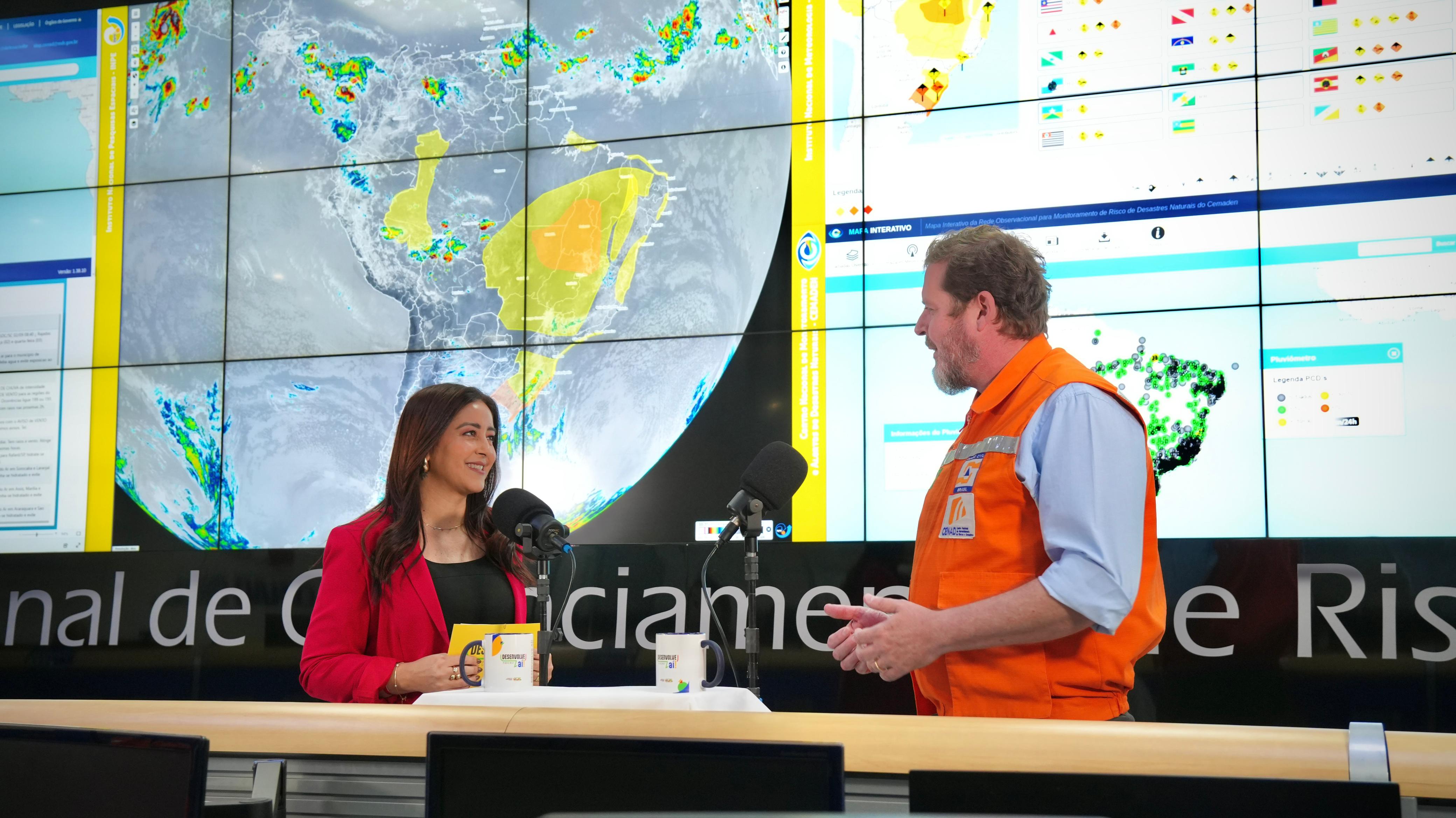 Podcast foi até a sede do Cenad para falar sobre a rede de informações de desastres potenciais e ações de resposta (Foto: Márcio Pinheiro/MIDR)