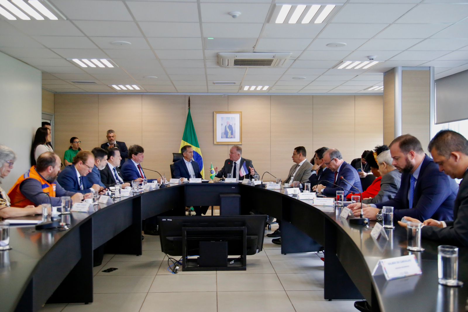 Ministro Waldez Góes em reunião com o governador do Espírito Santo, Renato Casagrande, e bancada federal do estado para tratar de ações de defesa civil. (Foto: Márcio Pinheiro/MIDR)
