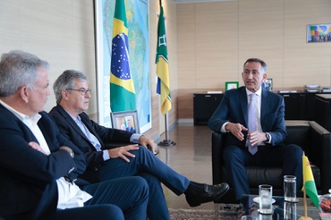 Em seguida, Waldez Góes recebeu o presidente da Agência Brasileira de Promoção de Exportações e Investimentos (Apex-Brasil) e ex-governador do Acre, Jorge Viana, e o senador Sérgio Petecão (PSD/AC) para debater sobre as fortes chuvas que atingiram o estado do Acre e as ações da Defesa Civil Nacional em ocasiões de desastre ( foto à direita ).