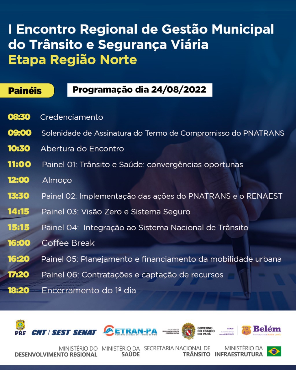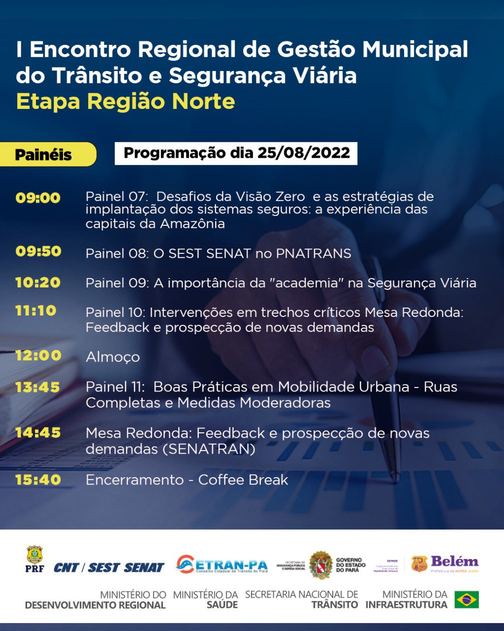 O encontro ocorrerá presencialmente no Auditório da Associação Comercial do Pará (ACP), em Belém, nestas quarta (24) e quinta-feira (25). Também haverá transmissão ao vivo pelo canal do Ministério da Infraestrutura (MInfra) no YouTube . As inscrições podem ser feitas neste link .