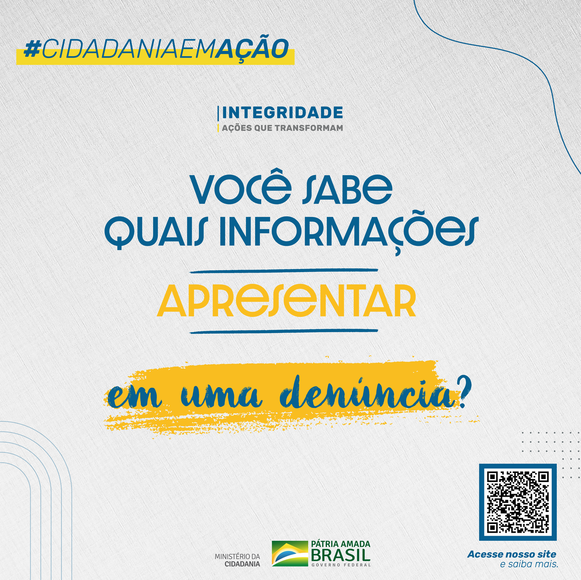 Qualquer pessoa que souber da existência de uma irregularidade ou de ato ilícito que envolva a atividade de um órgão público pode apresentar uma denúncia, que é um importante instrumento da democracia. A partir daí podem ser iniciados os procedimentos para investigação e punição dos envolvidos.