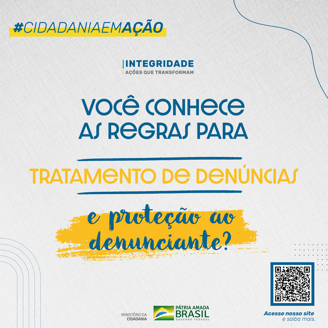 No âmbito do Ministério da Cidadania, o tratamento de denúncias está previsto na seção II da Portaria MC nº 670, de 13/09/2021.