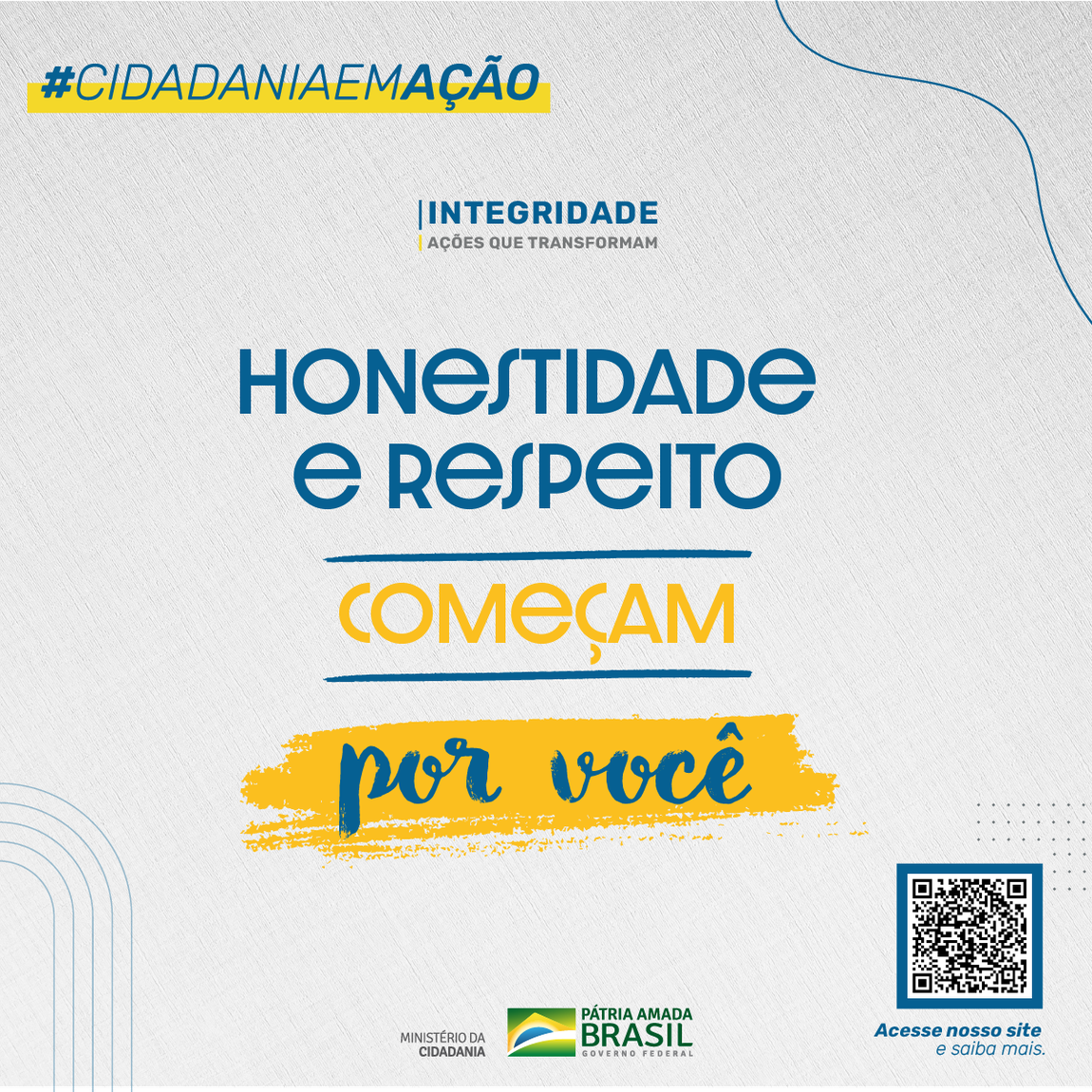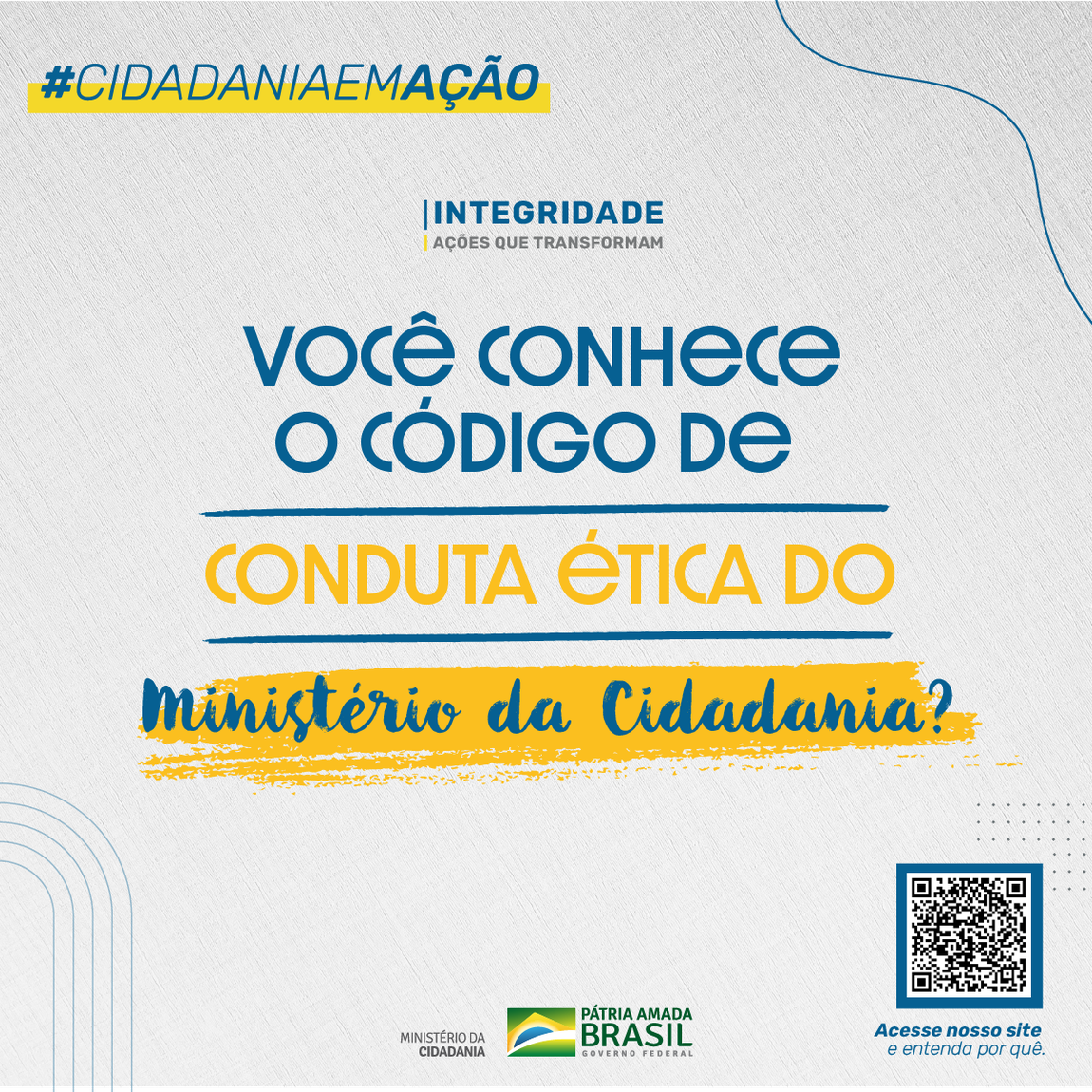 O Plano de Integridade do Ministério da Cidadania orienta as ações do Ministério para promoção e consolidação de cultura organizacional pautada na integridade. No âmbito do eixo temático Promoção da Ética e de regras de Conduta do Plano de Integridade, foi publicado o Código de Conduta Ética, que, entre outros objetivos busca a criação de ambiente adequado ao convívio social e a instituição de instrumento referencial de apoio à decisão ética cotidiana.