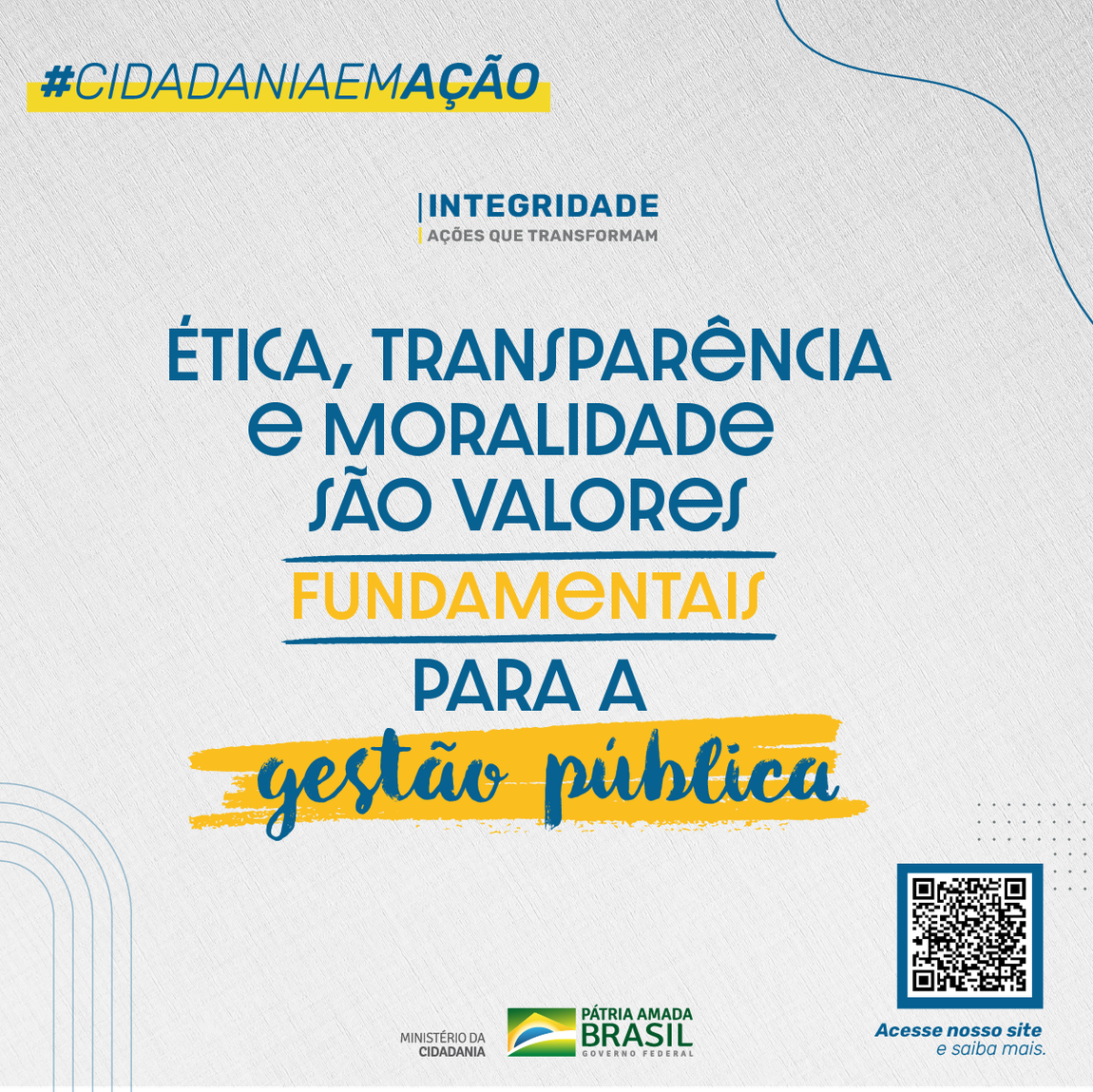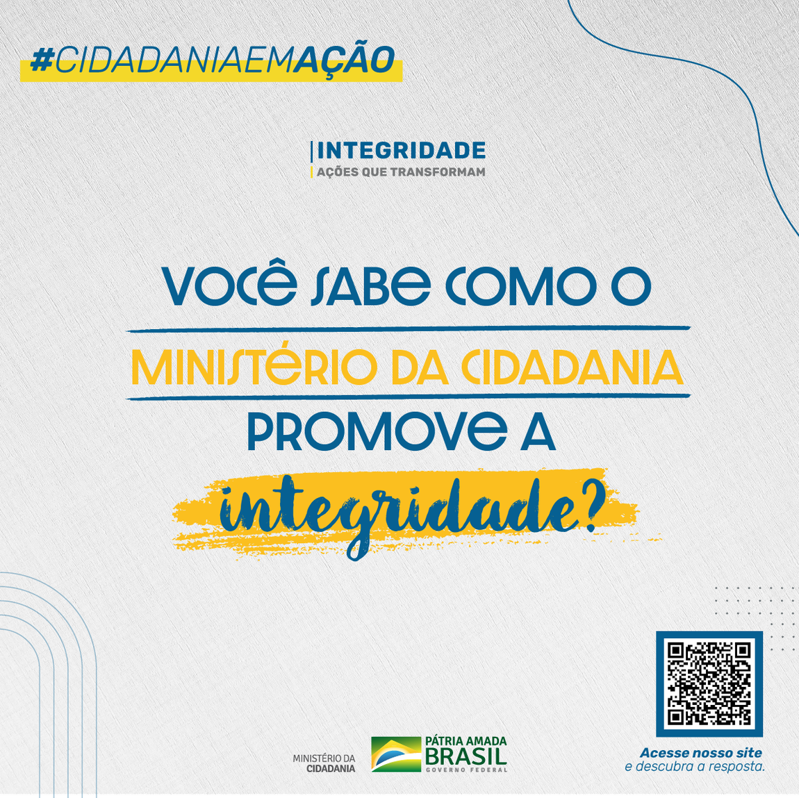 O Programa de Integridade do Ministério da Cidadania estrutura as medidas para prevenção, identificação e tratamento de questões relacionadas à ética, controles internos, transparência, entre outros temas da agenda de integridade. As diretrizes, estratégias e orientações constam no Plano de Integridade do Ministério da Cidadania. As ações incluem a edição de portarias e orientações, além de campanhas de comunicação para disseminação de informações e esclarecimento de dúvidas.