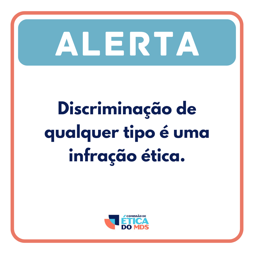 Discriminação de qualquer tipo é uma infração ética.