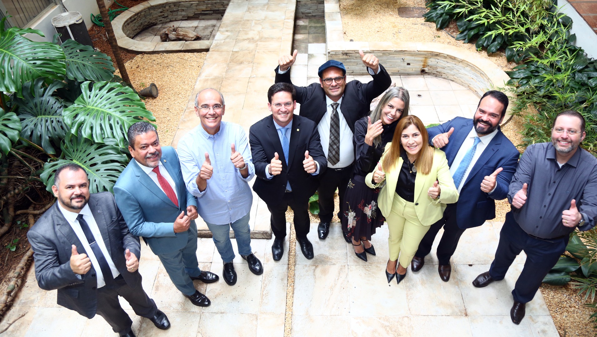O presidente do CFM, Mauro Ribeiro, o ministro da Cidadania, João Roma, e o deputado federal Hiran Gonçalves. Foto: Júlio Dutra/ Min. Cidadania