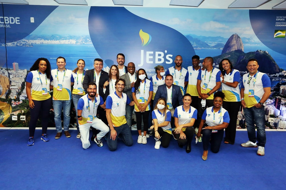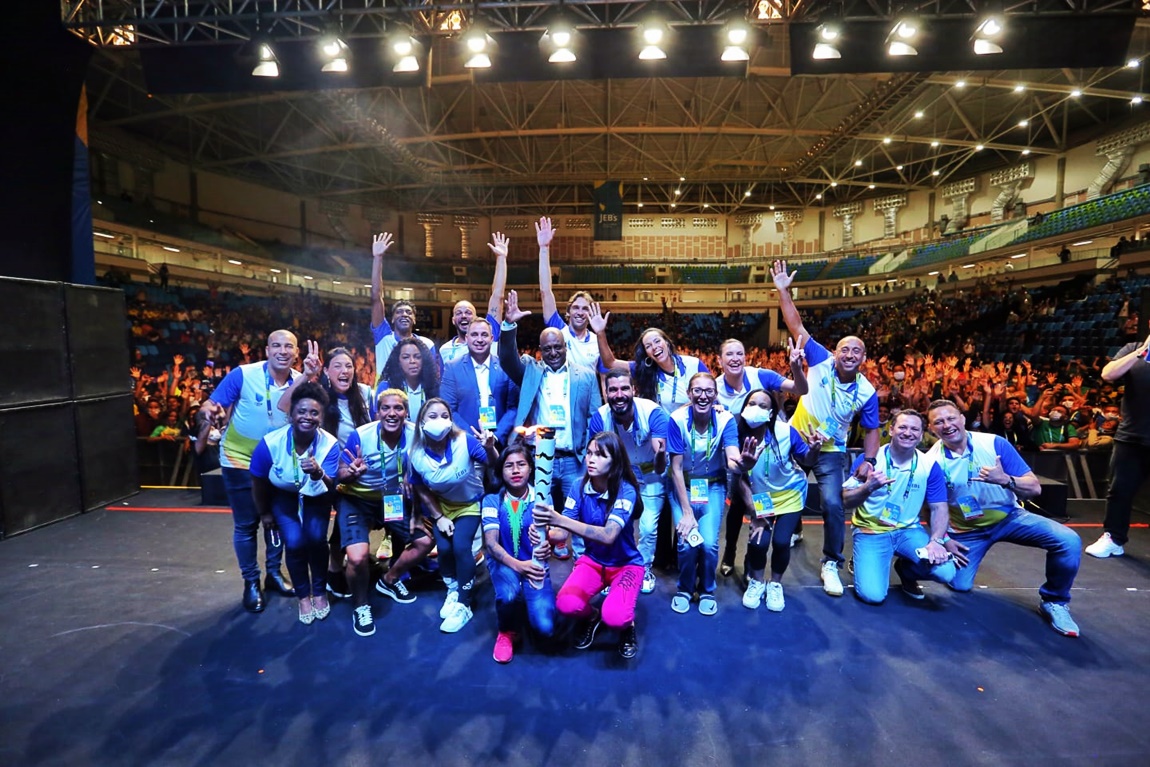 Embaixadores dos JEB's e autoridades reunidos na festa de encerramento. Foto: Ronaldo Caldas/ Min. Cidadania