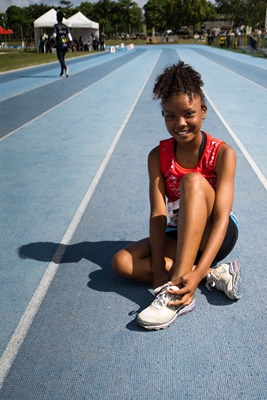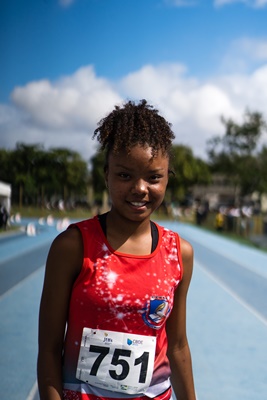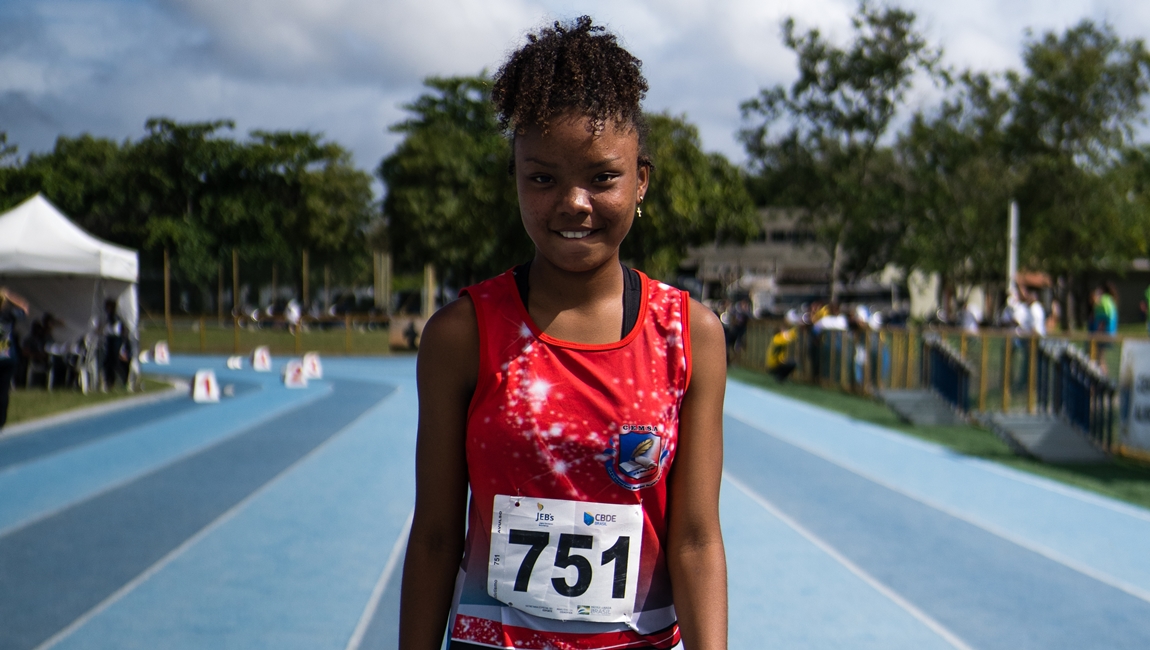 Nívia na pista oficial de atletismo do Cefan, no Rio de Janeiro, durante os JEB's: primeira vez numa estrutura de qualidade voltada para a modalidade. Foto: Matheus Bacelar/ Min. Cidadania