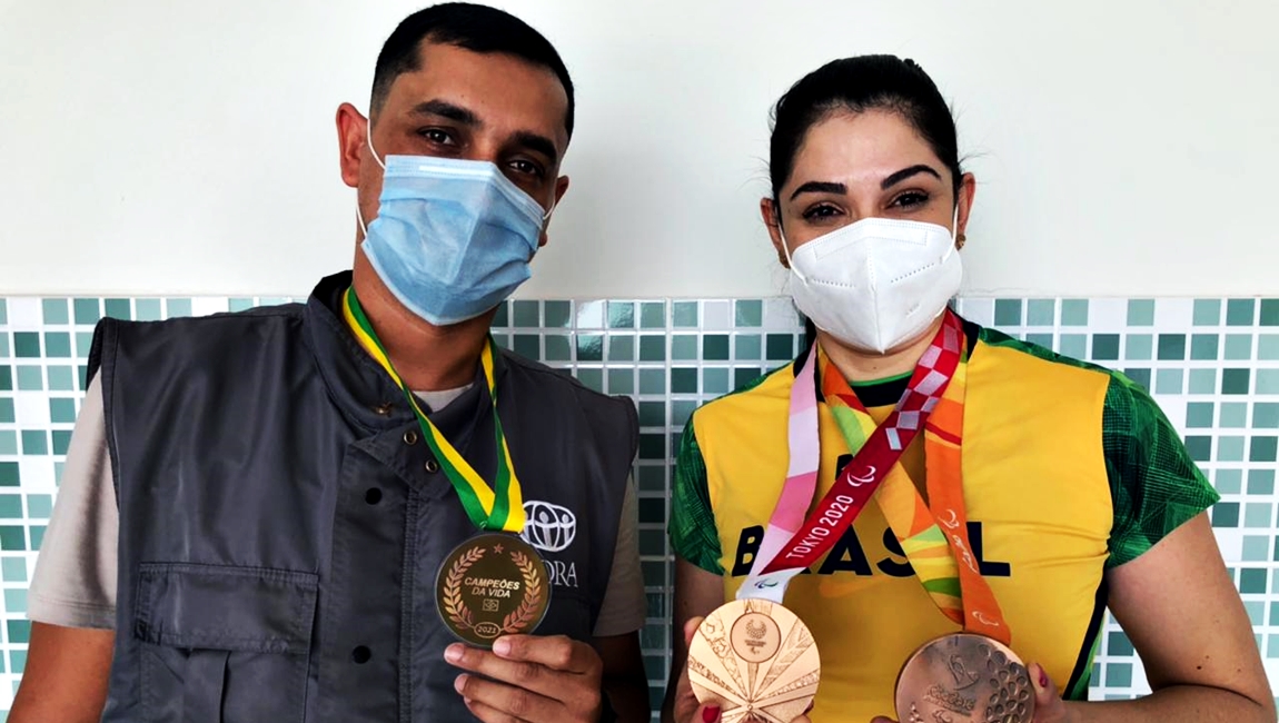 Geovani e Ádria com suas medalhas. Foto: Helano Stuckert/ Min. Cidadania