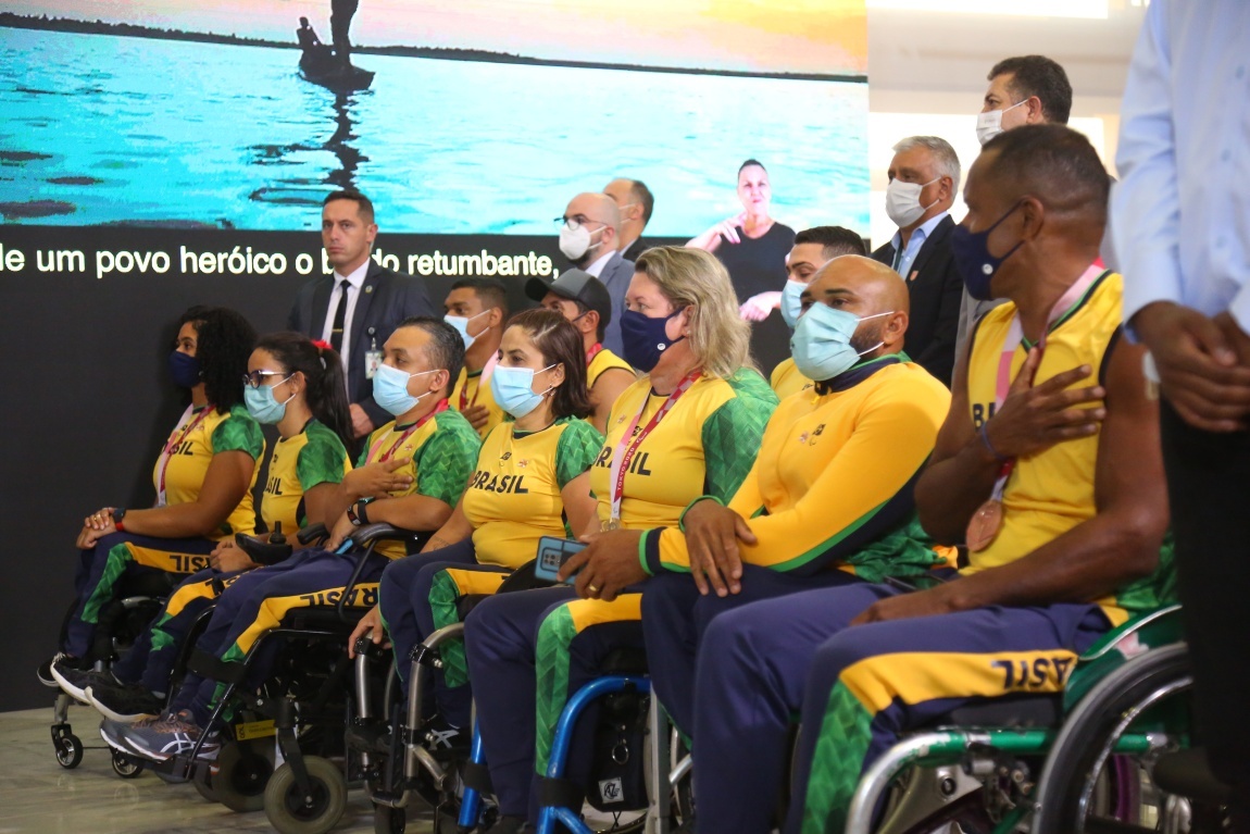 Atletas da delegação brasileira que foi a Tóquio durante o evento no Palácio do Planalto. Foto: Júlio Dutra/ Min. Cidadania