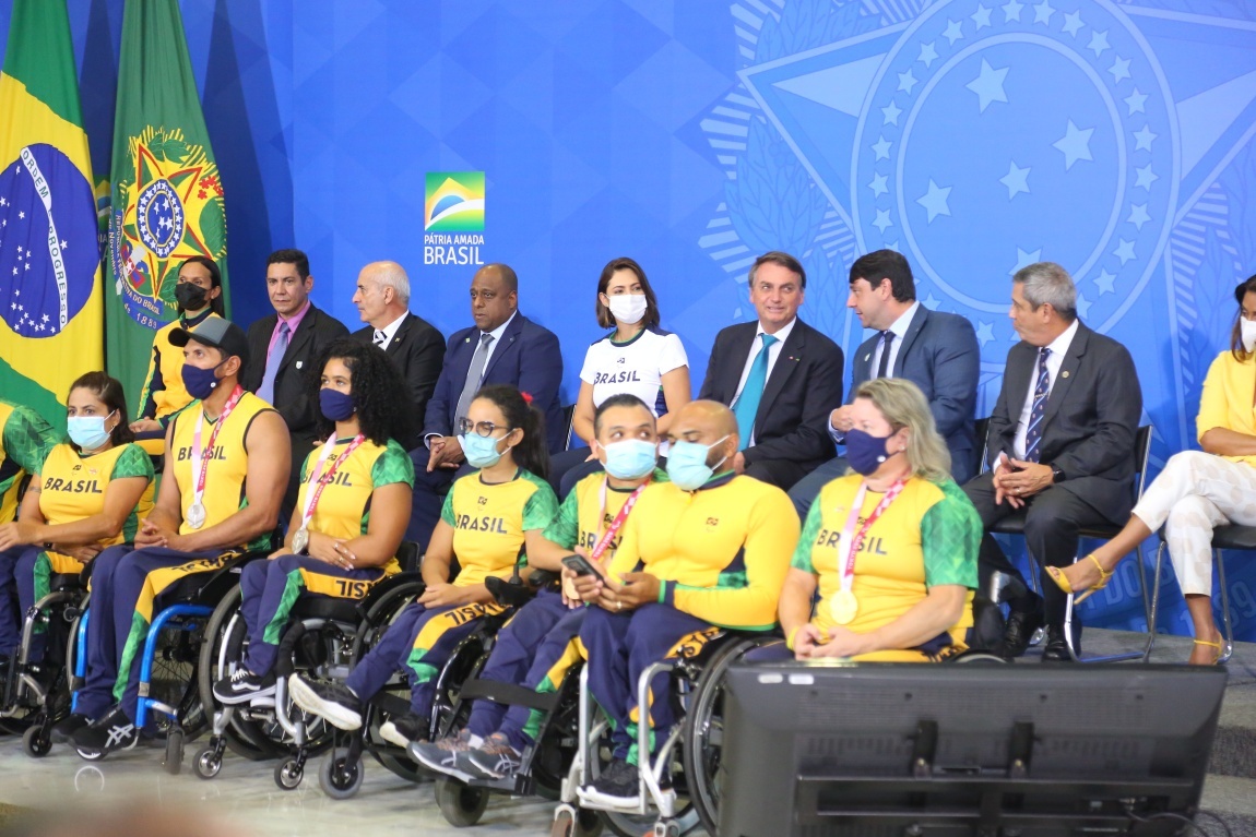 Autoridades e atletas durante o evento no Palácio do Planalto, em Brasília. Foto: Júlio Dutra/ Min. Cidadania