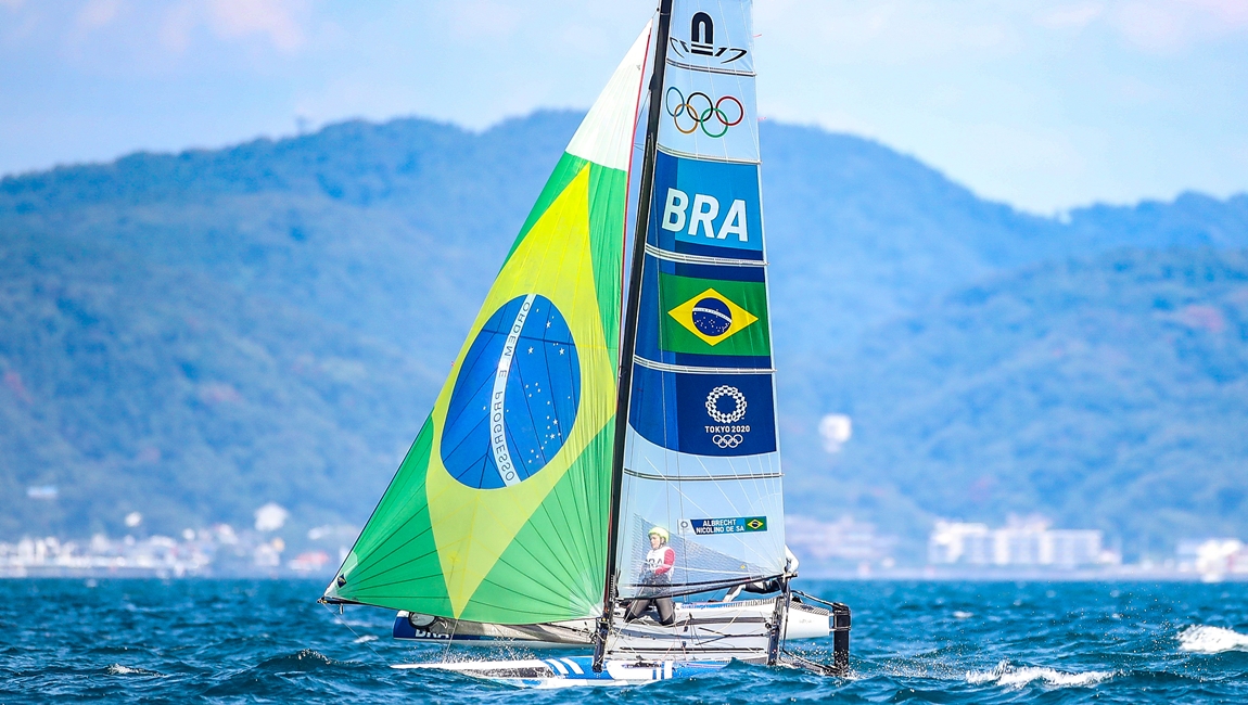 O velejador Samuel Albrecht, que competiu nos Jogos de Tóquio 2021, é um dos beneficiados pela Bolsa Auxílio da Lei de Incentivo. Foto: Gaspar Nóbrega/ COB
