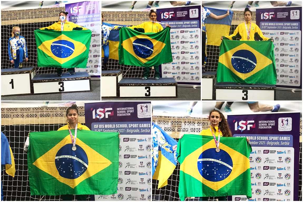 Ananda, Giovanna, Laysla, Stephany e Brenda: cinco bronzes no wrestling. Fotos: CBDE