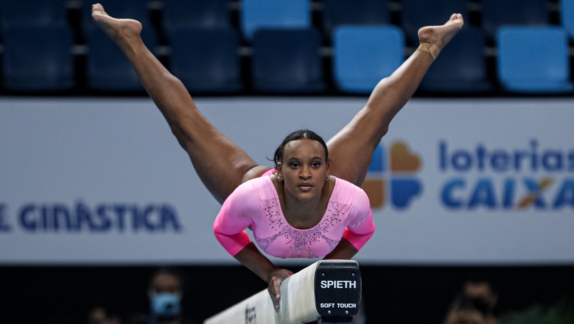 Rebeca Andrade conquistou a vaga olímpica durante o Pan de ginástica artística, na Arena Carioca 1, no Rio de Janeiro. Foto: Ricardo Bufolin/CBG