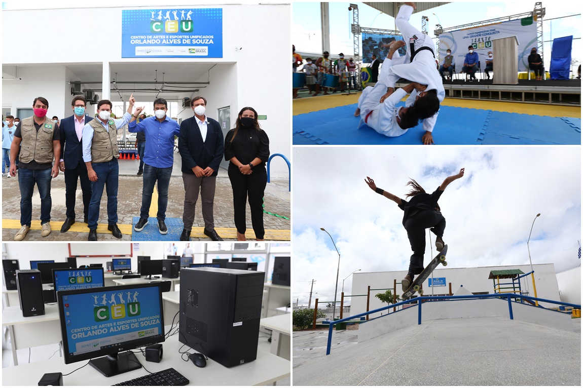 Os ministros João Roma, da Cidadania, e Gilson Machado, do Turismo, durante inauguração de unidade do Estação Cidadania em Camaçari (BA). Foto: Júlio Dutra/Min. Cidadania