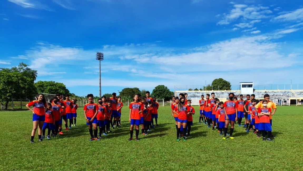 Meninos e meninas do projeto em campo. Foto: Divulgação/Inclusão Social Através do Futebol