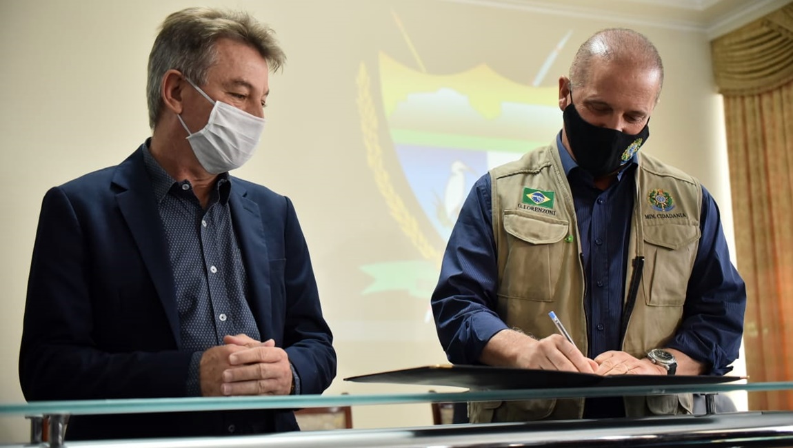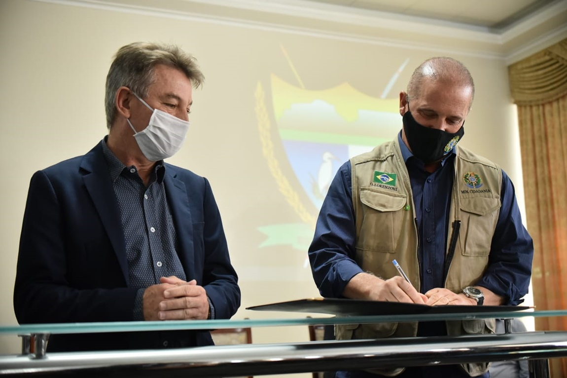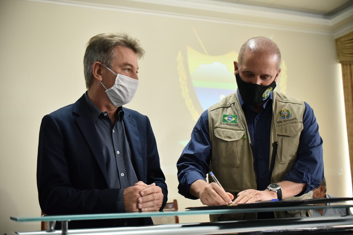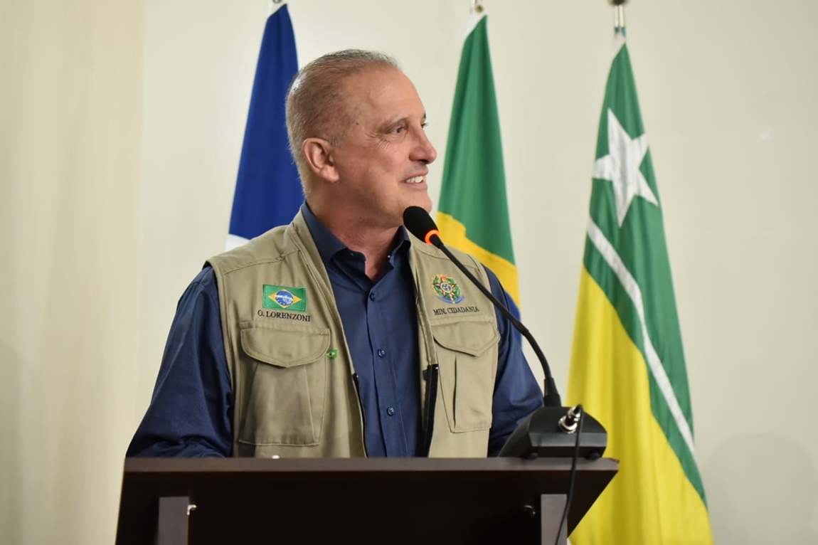 Ministro Onyx Lorenzoni durante escala em Boa Vista (RR) para oficializar a liberação de recursos do PAA. Foto: Rafael Carvalho/Min. Cidadania