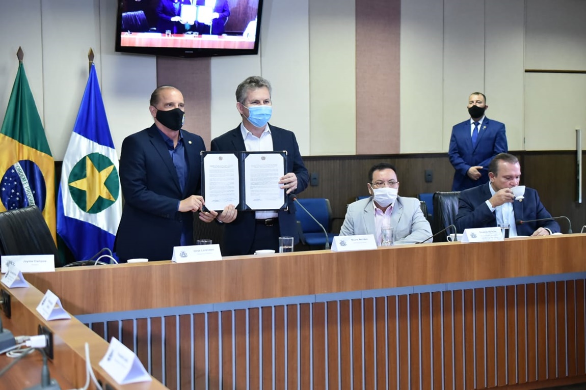 O ministro Onyx Lorenzoni ao lado do governador de Mato Grosso, Mauro Mendes. Foto: Rafael Carvalho/ Min. Cidadania
