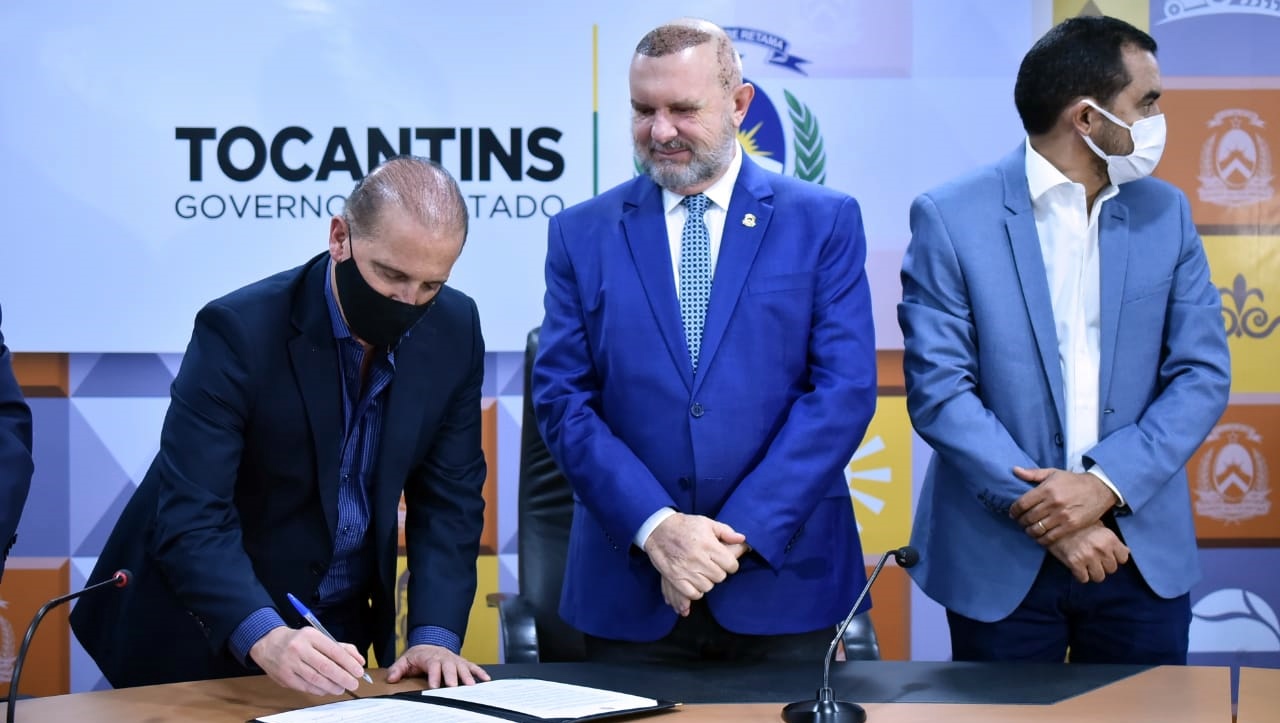 O ministro da Cidadania, Onyx Lorenzoni, e o governador do Tocantins, Mauro Carlesse, assinam Termo de Adesão. Foto: Rafael Carvalho/Min. Cidadania
