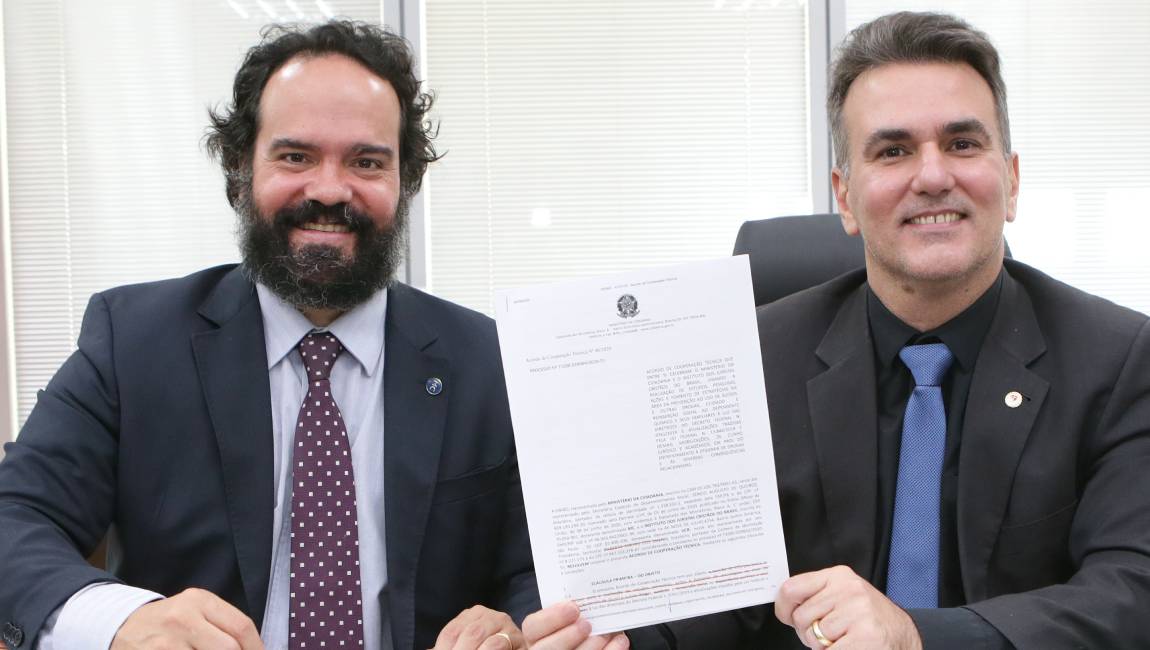 O secretário especial do Desenvolvimento Social, Sérgio Queiroz, (à direita) e o secretário nacional de Cuidados e Prevenção às Drogas, Quirino Cordeiro (à esquerda). Foto: Ronaldo Caldas / Ministério da Cidadania