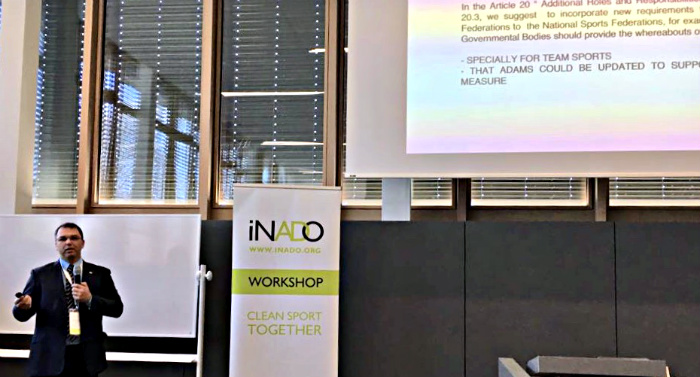 Diretor de Informação e Educação da ABCD, Sandro Teixeira, durante Assembleia-Geral do Instituto das Organizações Nacionais Antidoping (Inado) Foto: Divulgação