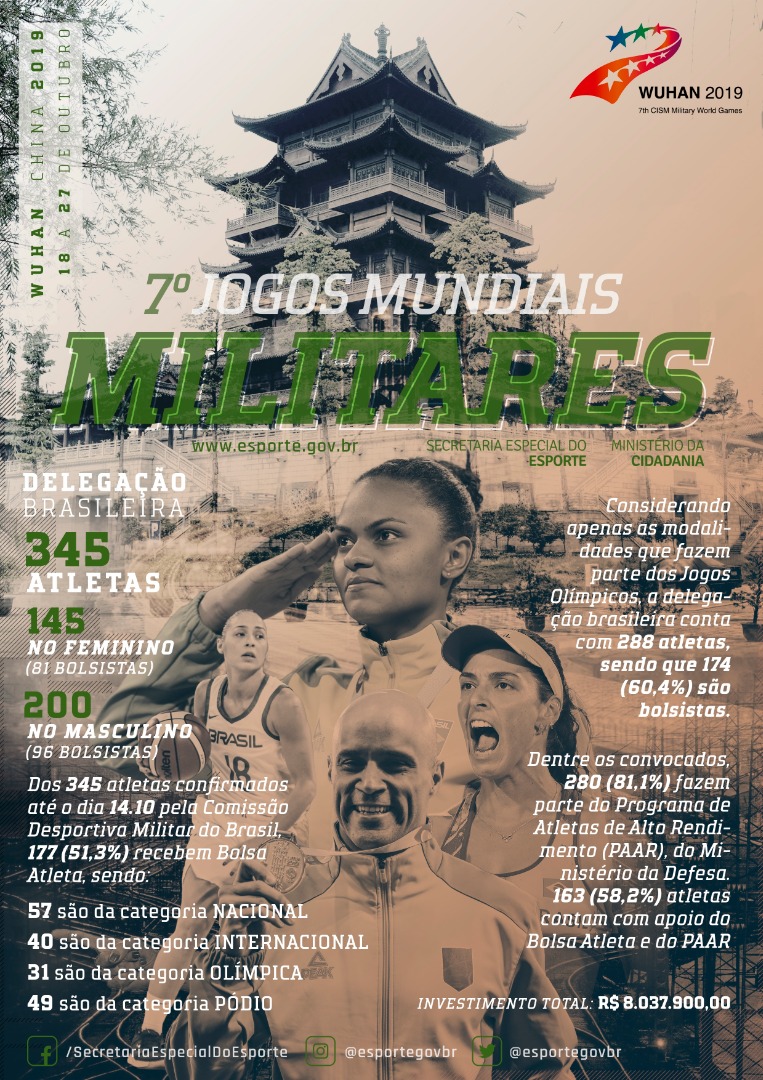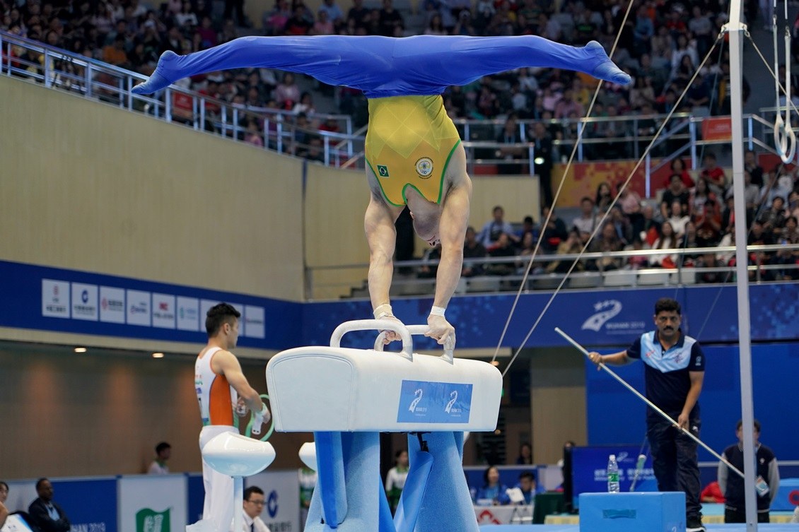 Apresentação da seleção brasileira de ginástica artística na disputa por equipes nos Jogos Mundiais Militares. Foto: Rodolfo Vilela/ rededoesporte.gov.br