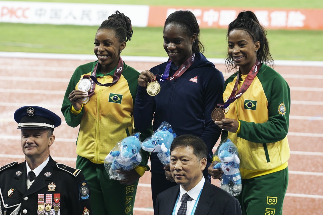 Dobradinha brasileira no pódio dos 100m feminino, com prata para Rosângela Santos e bronze para Vitória Rosa. Foto: Rodolfo Vilela