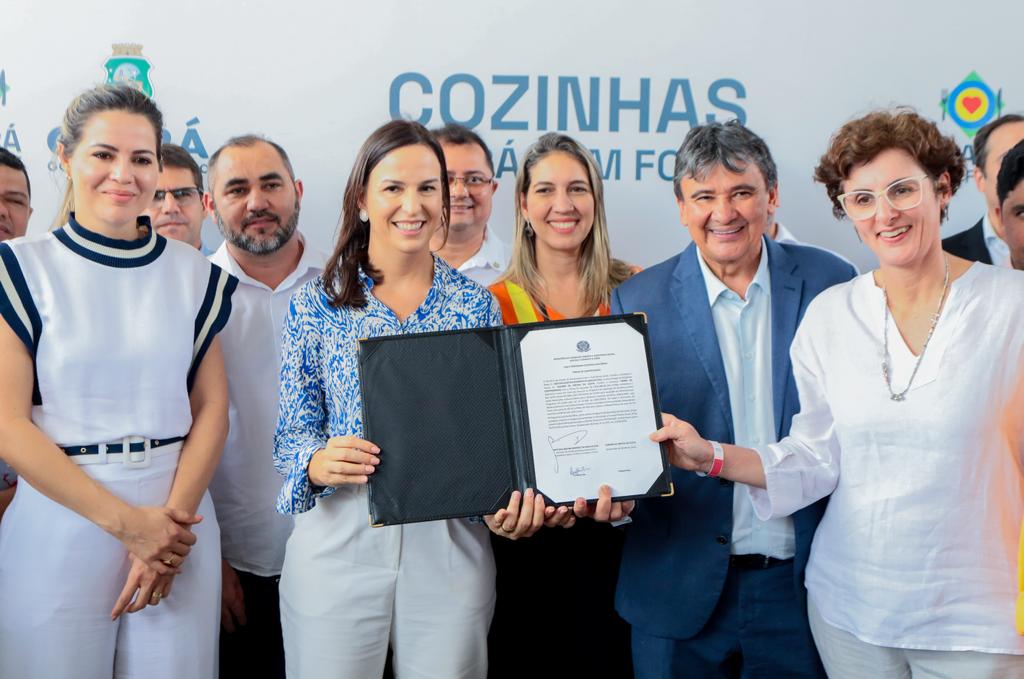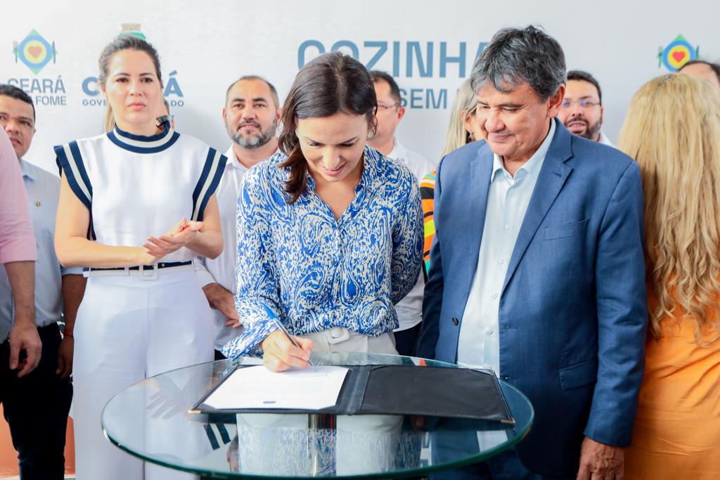 MDS repassa recursos para Cozinhas Solidárias no Ceará. Ao centro, primeira dama Lia de Freitas e ministro Wellington Dias, e à direita, secretária Lilian Rahal. (Foto: Roberta Aline/MDS)