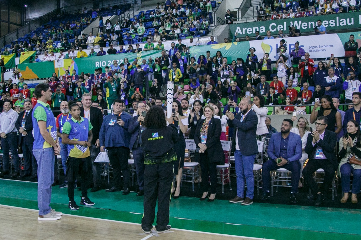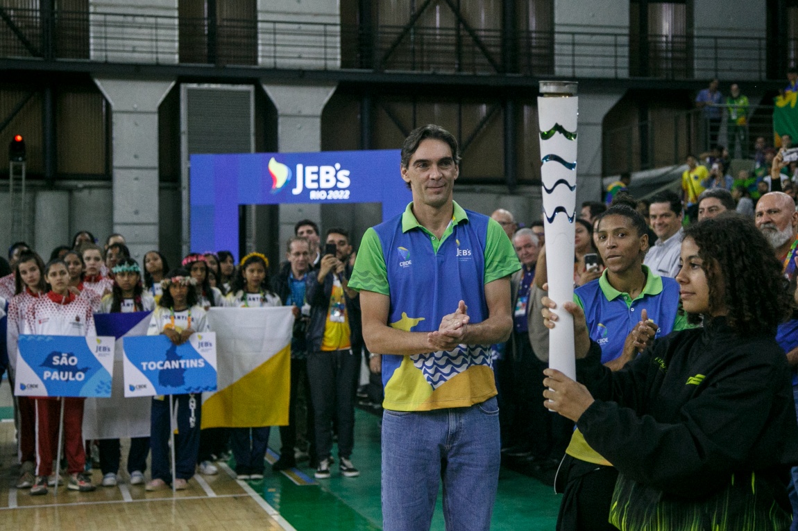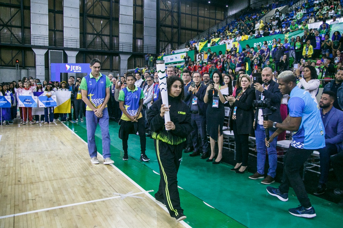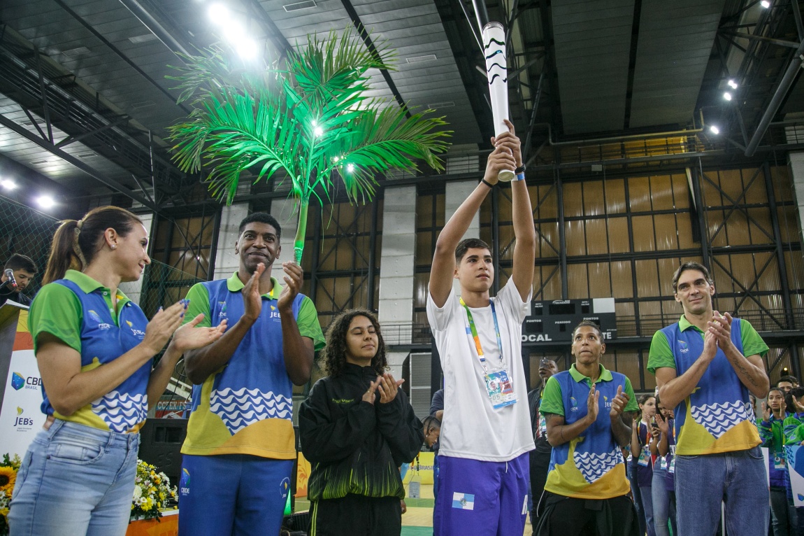 Atleta do futsal do Rio de Janeiro, Miguel Lima acendeu a pira simbólica na abertura dos JEB's. Foto: Claudia Martini/ Min. Cidadania