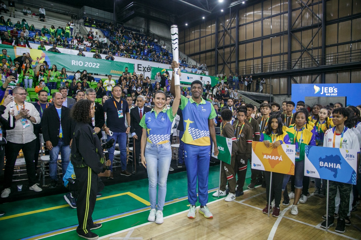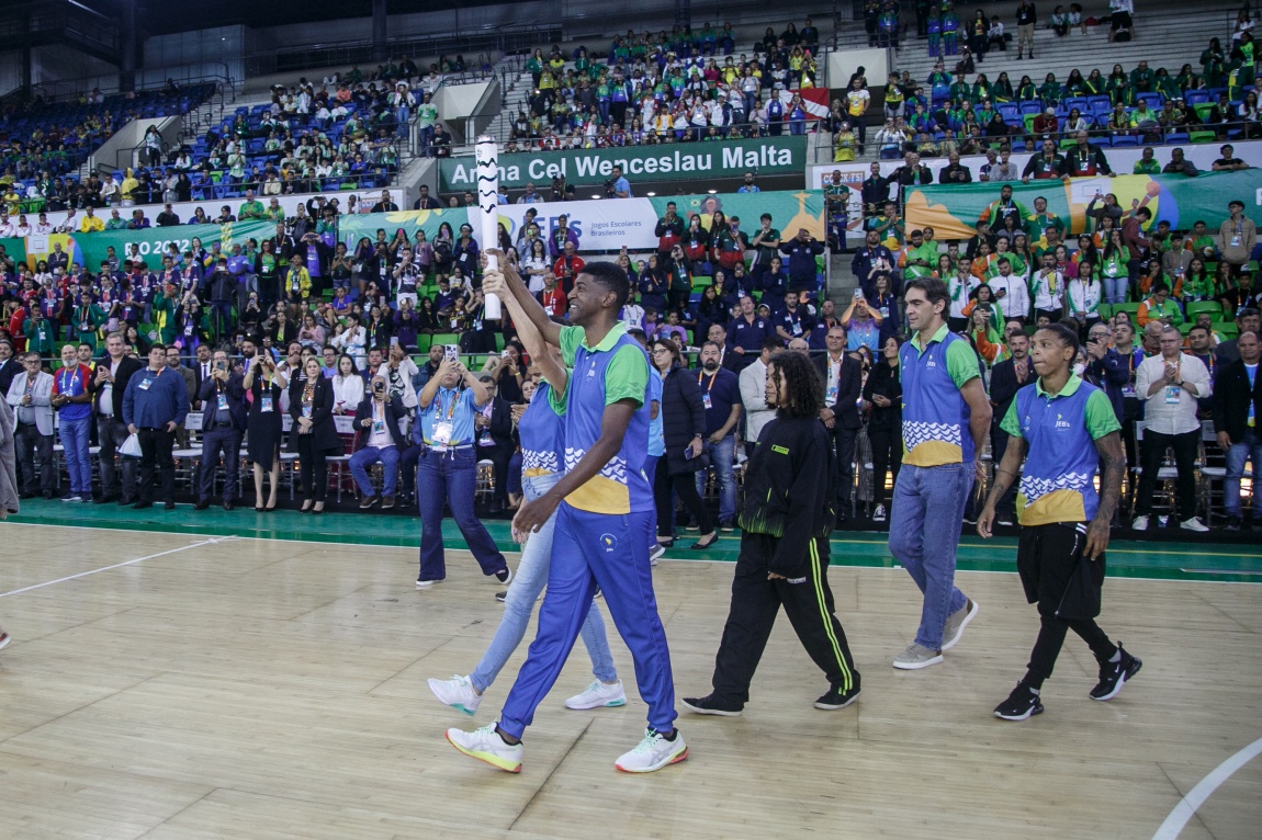 Embaixadores e estudantes-atletas conduziram a pira simbólica na abertura dos JEB's. Foto: Claudia Martini/ Min. Cidadania