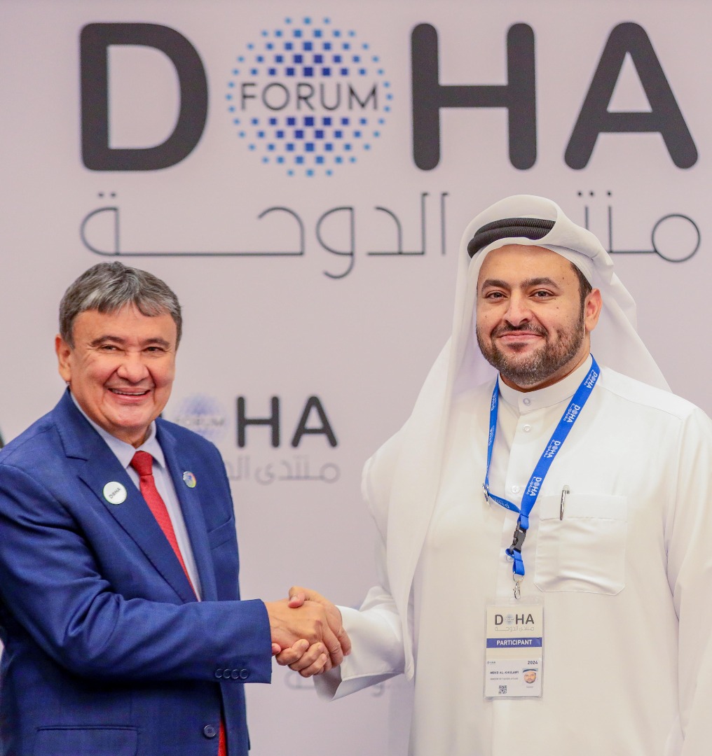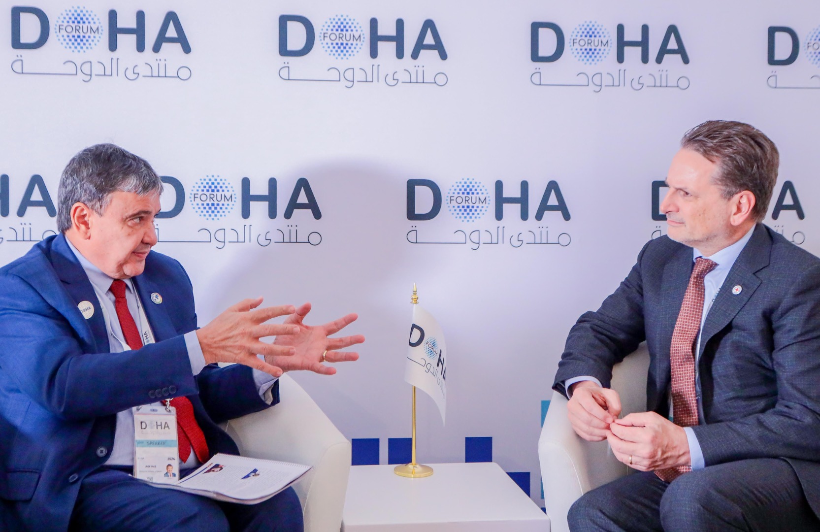 Wellington Dias com o ministro das Relações Exteriores do Catar, Mohammed bin Abdulaziz Al-Khulaifi (Foto: Roberta Aline / MDS )