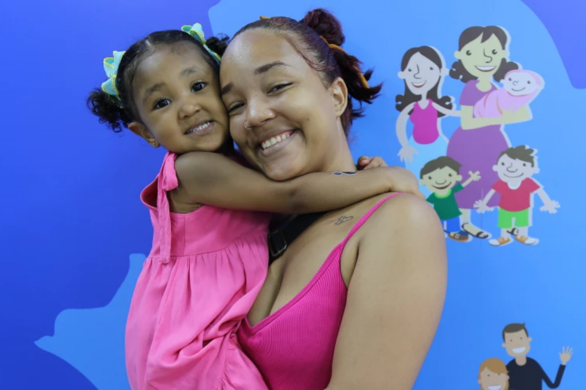 Andresa Santos e sua filha Bella Ayla em um Centro de Referência de Assistência Social em Salvador. Elas estão inscritas no Cadastro Único, que lhes garante acesso a serviços governamentais voltados às populações mais vulneráveis. (Foto: Mariana Ceratti/Banco Mundial.)