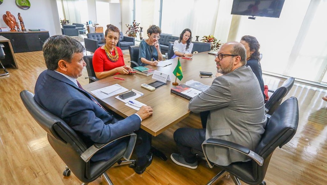 Os ministros Jader Filho (Cidades), Waldez Góes (Desenvolvimento Regional) e Wellington Dias (MDS)