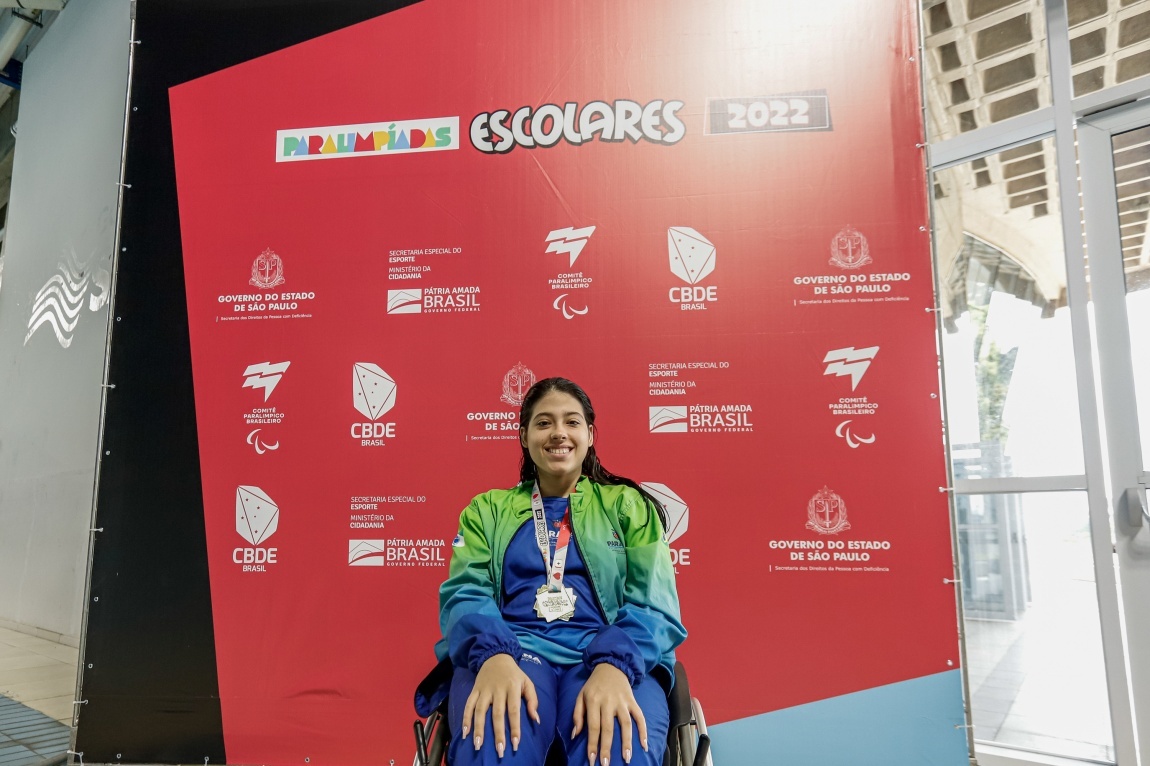 Emanuelle, aos 15 anos, tem tempo entre os cinco melhores do país na natação adulta paralímpica. Foto: Ricardo Valarini/ Min. Cidadania