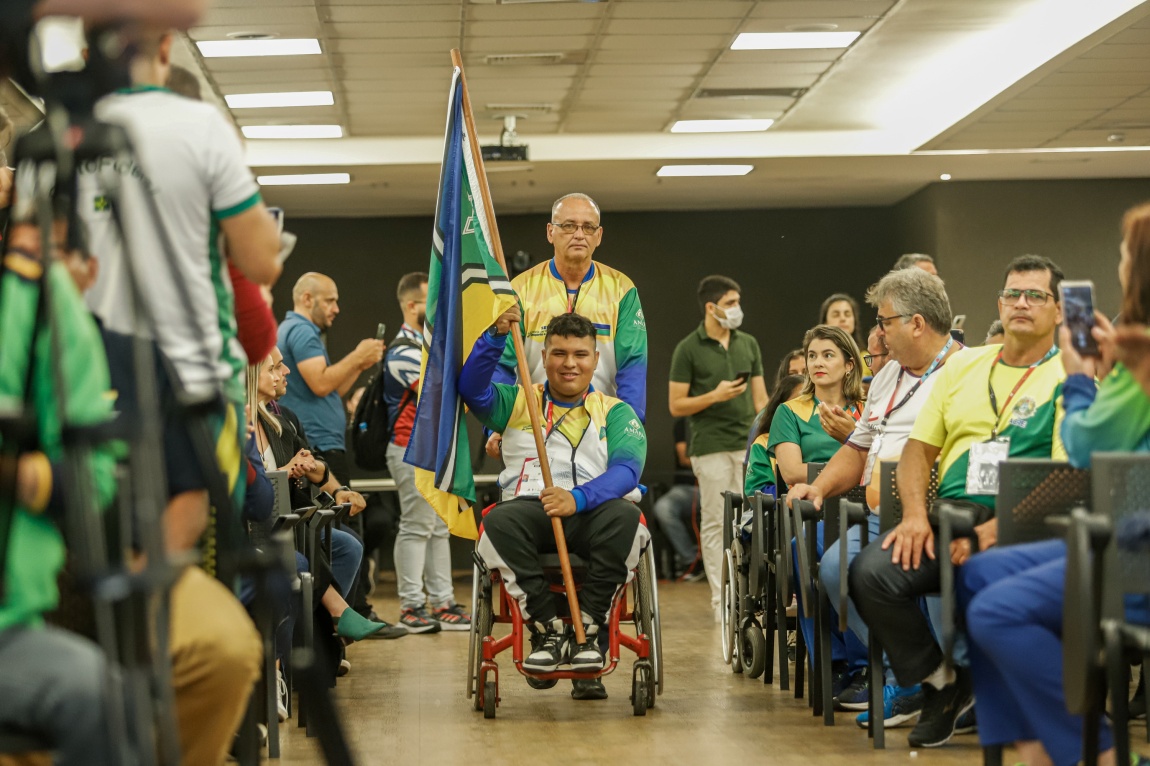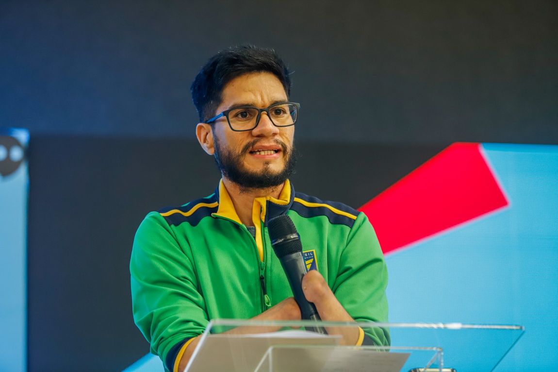 O secretário nacional de Paradesporto do Ministério da Cidadania, Agtônio Guedes, durante a abertura das Paralimpíadas Escolares. Foto: Ricardo Valarini/ Min. Cidadania