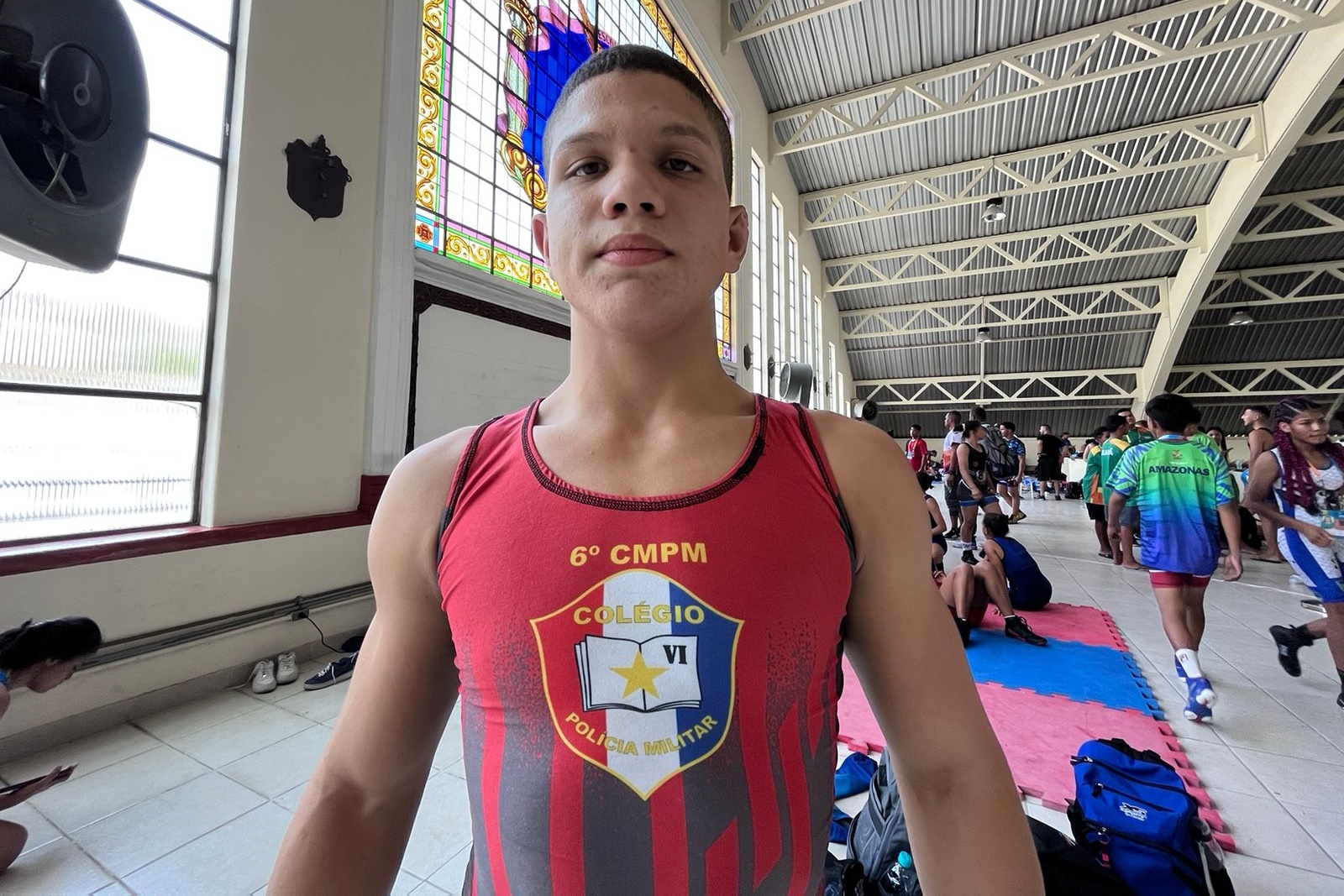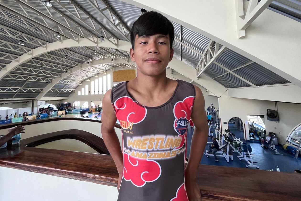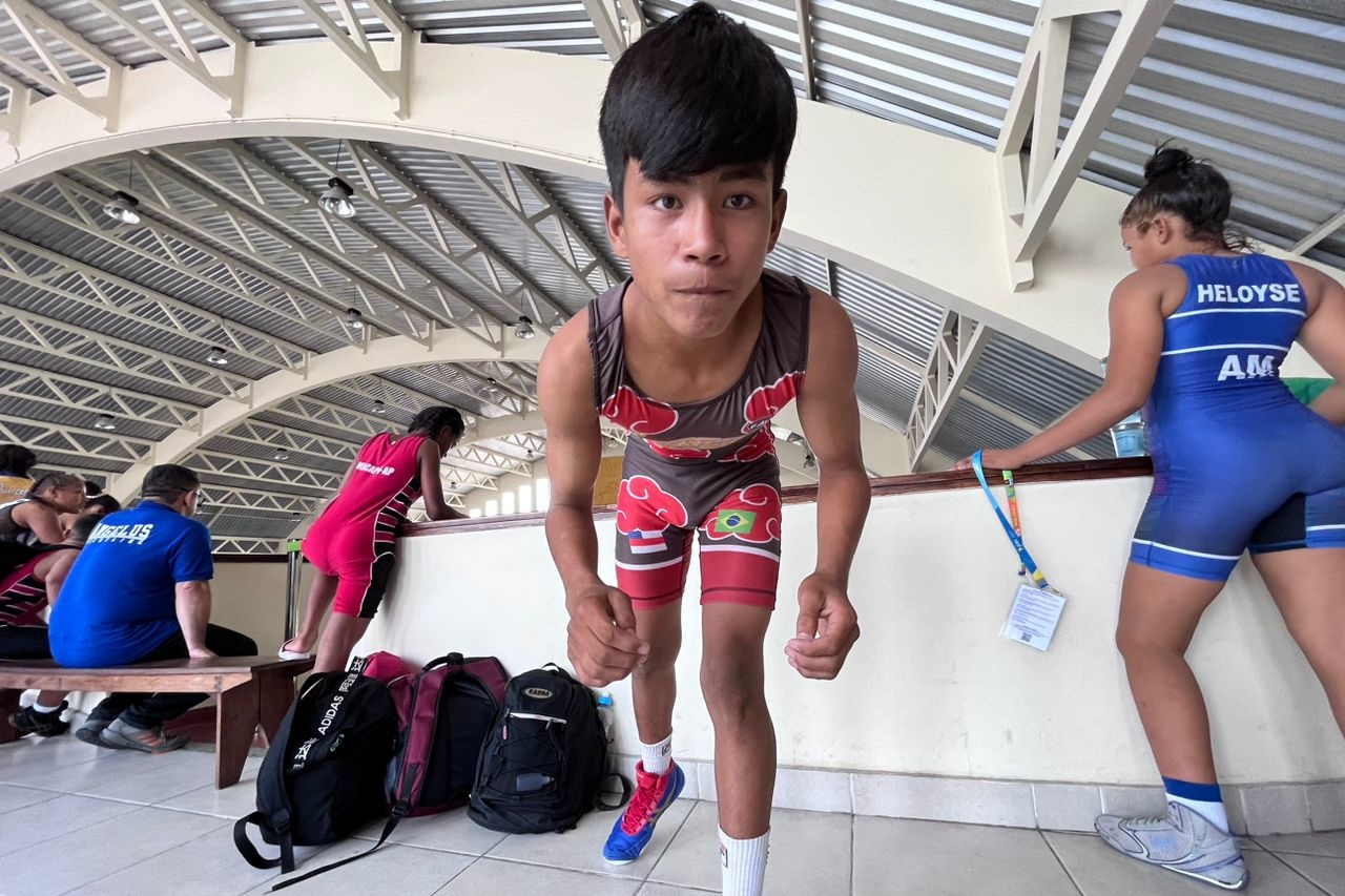 Integrante da etnia Marubo, Lavozier Hermini, de 13 anos, é um dos atletas da equipe de wrestling do Amazonas nos JEB's 2022. Foto: Amanda Gil/ Min. Cidadania