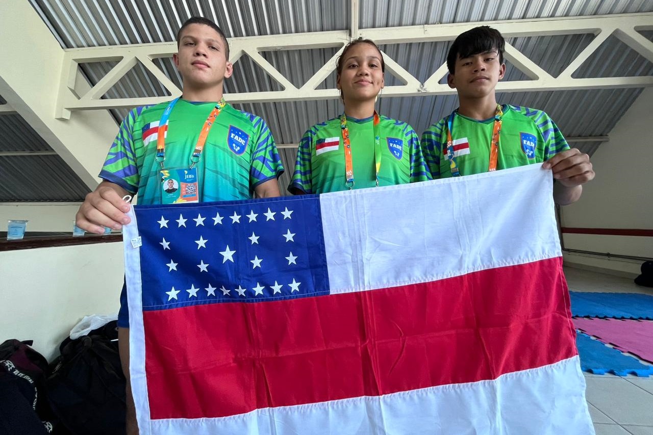 Samuel, Agatha e Lavozier: trio amazonense disputa o wrestling nos JEB's 2022. Foto: Amanda Gil/ Min. Cidadania