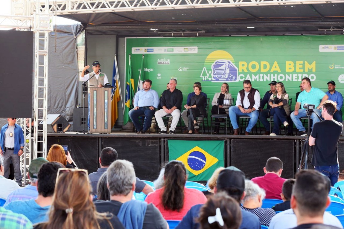 O ministro da Cidadania, Ronaldo Bento, durante entrega de estação do Roda Bem Caminhoneiro em Dourados (MS). Foto: Júlio Dutra/ Min. Cidadania