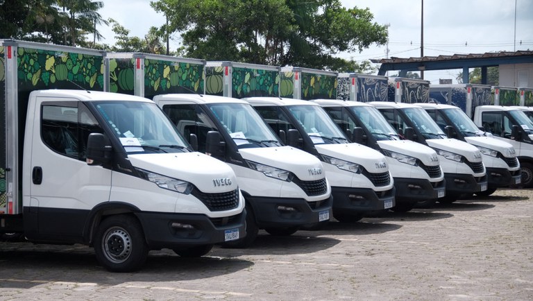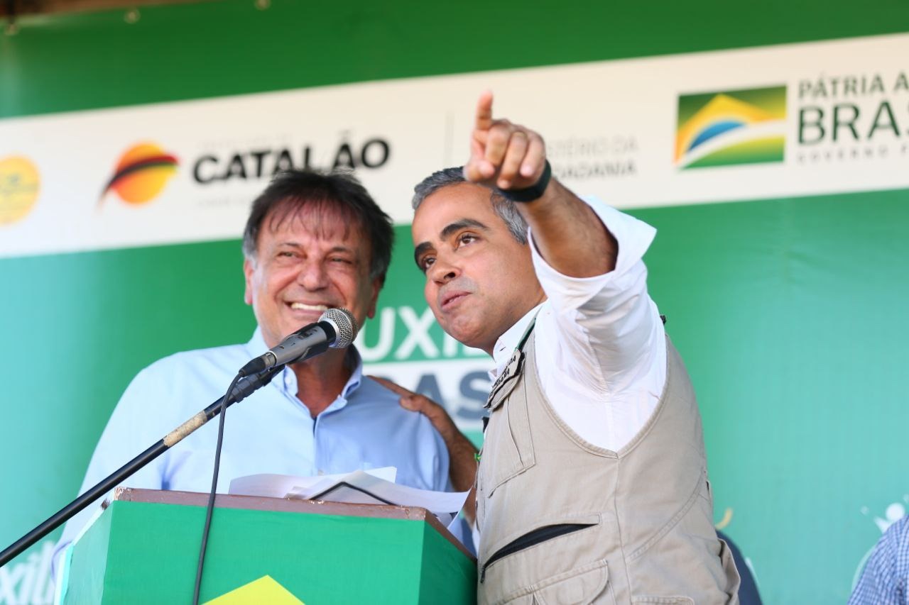 O ministro da Cidadania, Ronaldo Bento, e um dos caminhões do Alimenta Brasil doados a municípios baianos. Foto: Matheus Bacellar/ Min. Cidadania