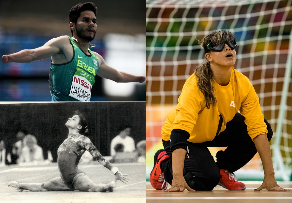 O ministro da Cidadania, Ronaldo Bento, ao lado de atletas brasileiros que foram medalhistas nas Surdolimpíadas. Foto: Júlio Dutra/ Min. Cidadania