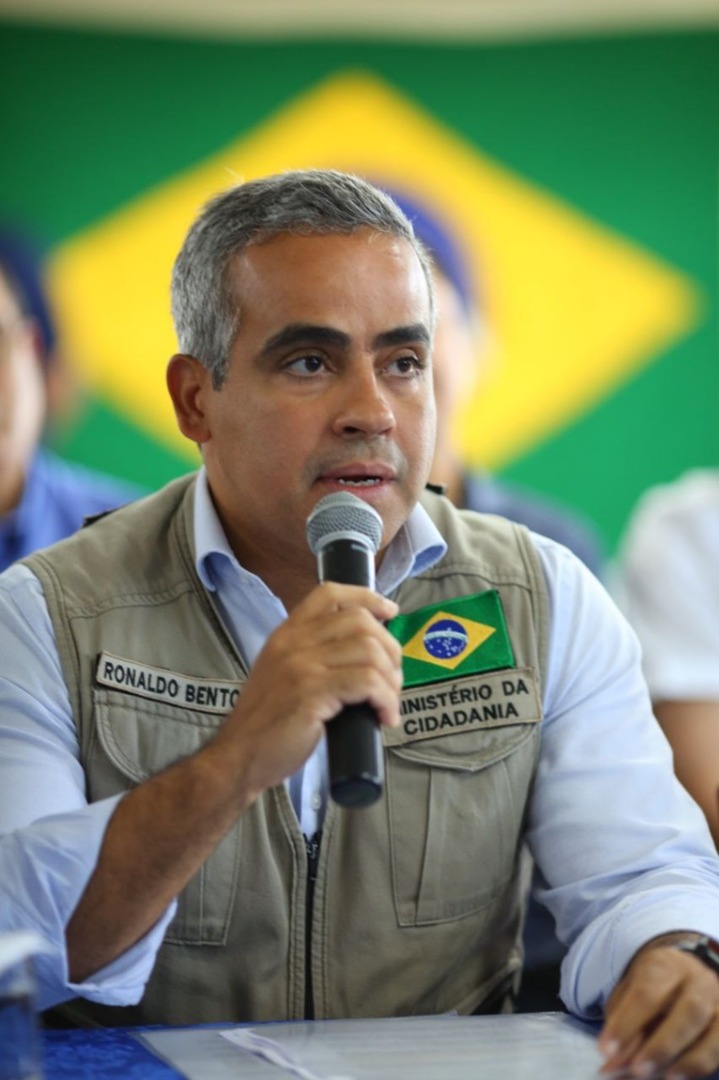 O ministro da Cidadania, Ronaldo Bento, durante coletiva de imprensa em Recife. Foto: Júlio Dutra/ Min. Cidadania