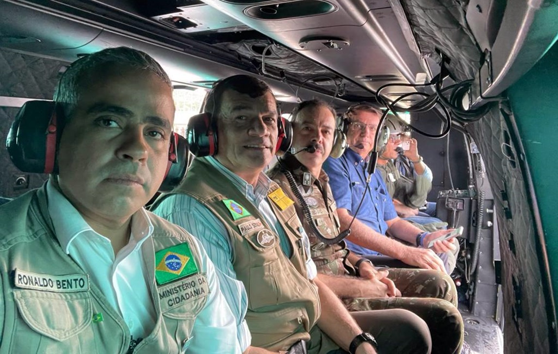 O ministro da Cidadania, Ronaldo Bento, e comitiva presidencial durante sobrevoo a áreas atingidas pelas chuvas em Recife. Foto: Clauber Cleber Caetano/PR