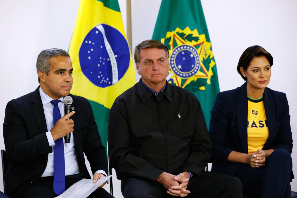 O ministro da Cidadania, Ronaldo Bento, e o presidente Jair Bolsonaro durante coletiva de imprensa em Recife. Foto: Clauber Cleber Caetano/PR