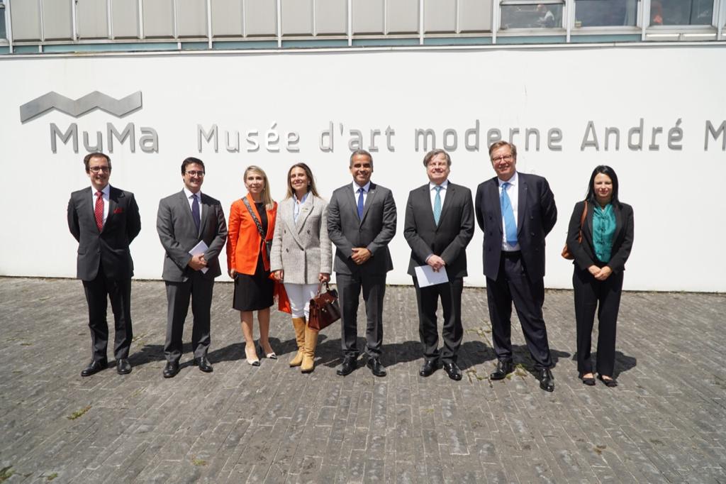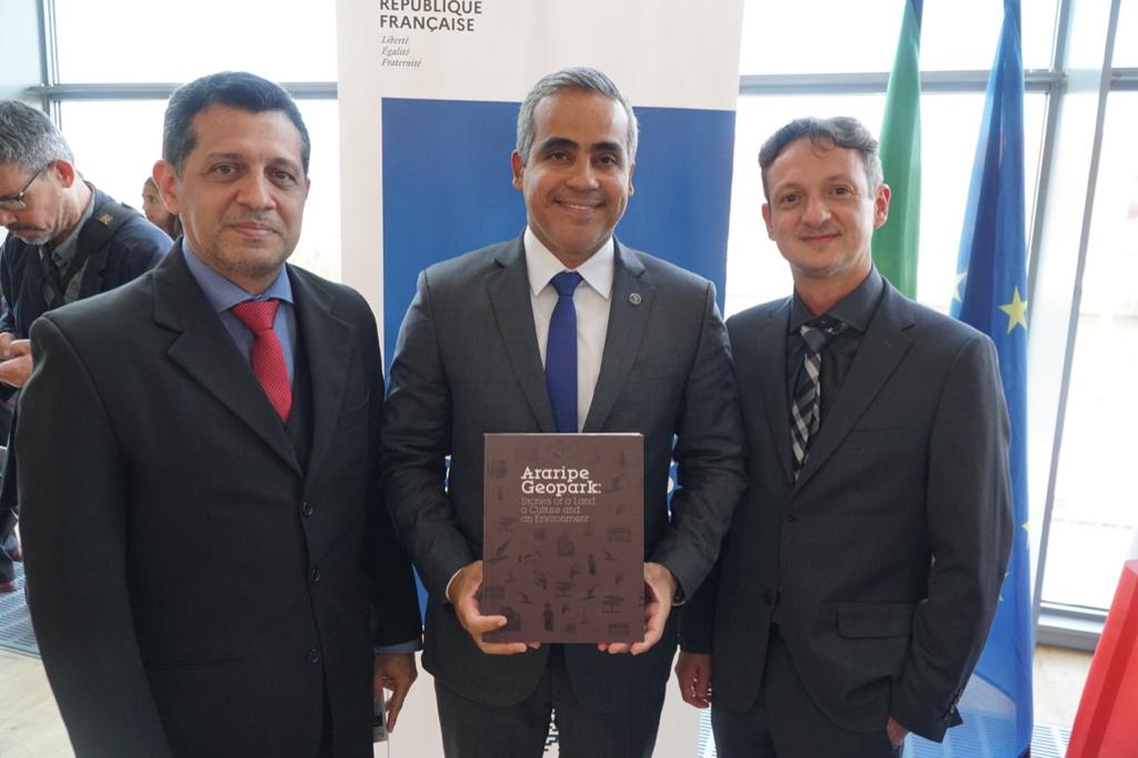 Ministro Ronaldo Bento ao lado de integrantes da embaixada do Brasil na França durante evento que marcou início das remessas de fósseis contrabandeados. Foto: Helano Stucktert/ Min. Cidadania
