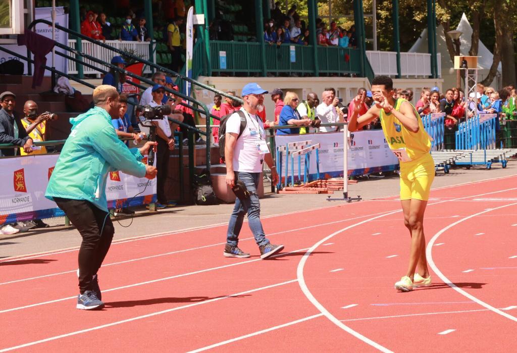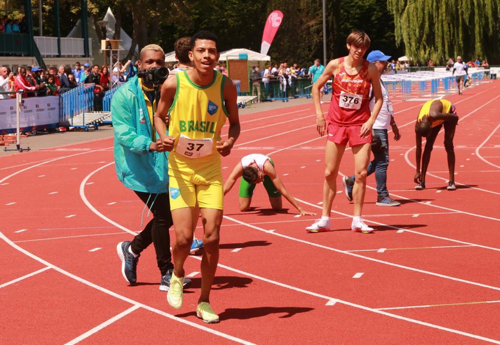 Elias Santos logo depois de conquistar o título dos 800m na Gymnasiade. Foto: Jorge Henrique/ CBDE