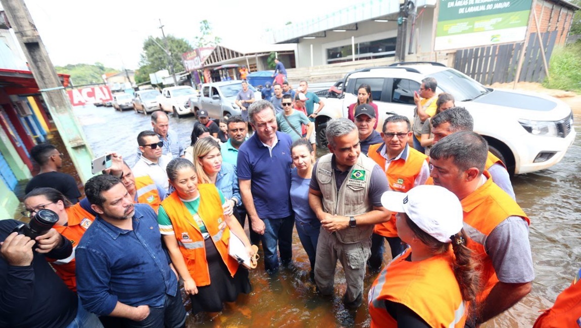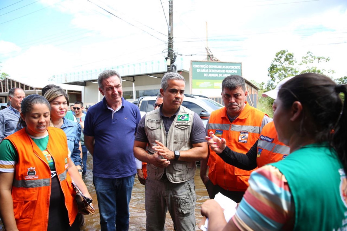 Ministro Ronaldo Bento durante visita a municípios atingidos pelas chuvas no Amapá. Foto: Júlio Dutra/ Min. Cidadania