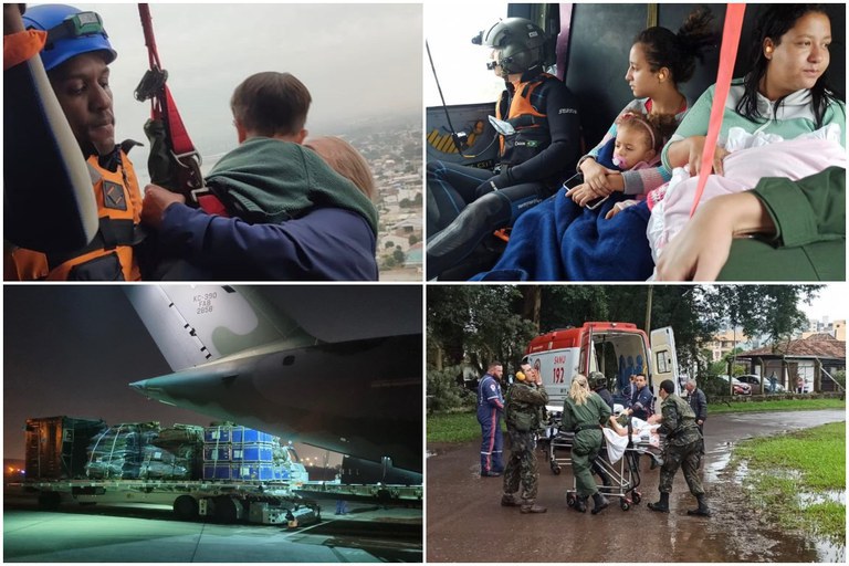 Resgates, auxílio médico e envio de equipamentos e medicamentos: trabalho conjunto e articulado. Fotos: Força Aérea Brasileira