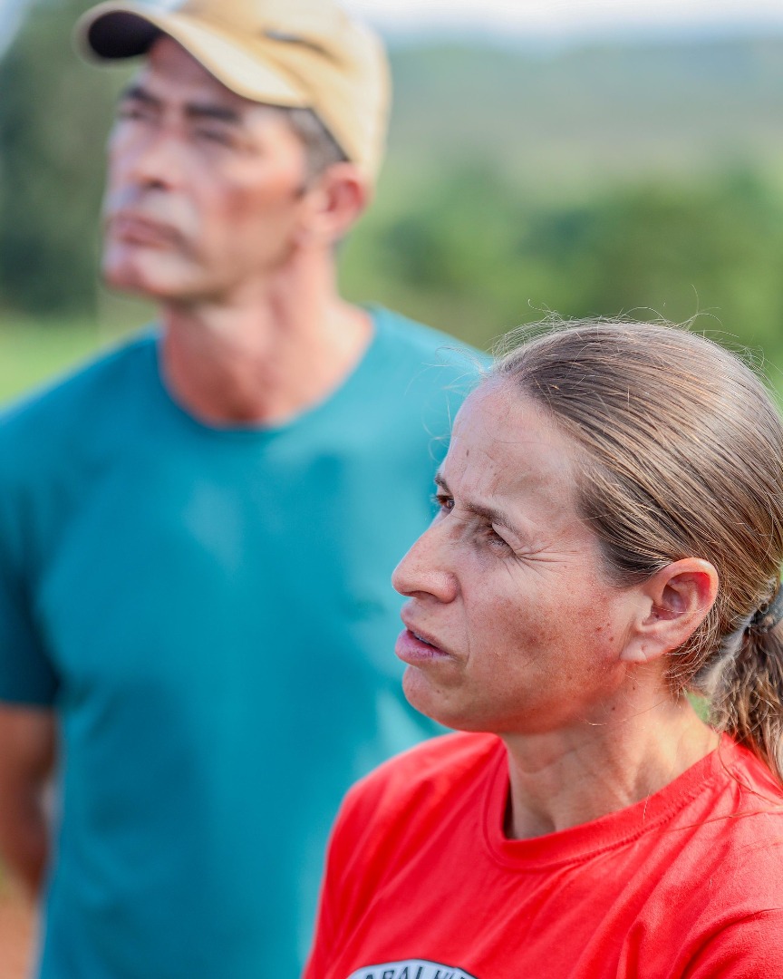 A história do assentamento confunde-se com a trajetória de vida do casal Ana Paula Lourenço, 39 anos, e Josué de Araújo, 43 anos. “Vim da cidade pra roça em busca de uma vida melhor, mais digna. Poder viver com mais autonomia, produção. A gente quer ter o espaço de vida da gente, sair da pobreza e vir para uma vida melhor”, conta Ana Paula, que trabalhava em fábricas da região de Ponta Grossa sem carteira assinada, recebendo apenas a diária do dia trabalhado. A pequena produtora rural, agora assentada, mãe de um menino e uma menina, relata que hoje a família consegue ter reservas financeiras, com uma renda de aproximadamente R$ 3 mil mensais. “Hoje eu sou milionária. Consumo alimento saudável que produzo aqui na minha terra. Vendo esse alimento por meio da cooperativa. Aqui a gente vive no céu, consegue juntar um dinheirinho”, comemora.